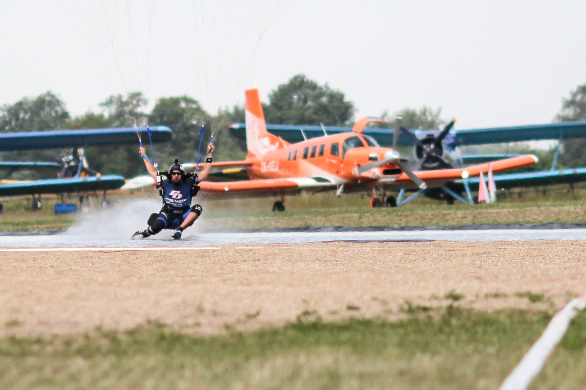 W ostatnim tygodniu, na lotnisku w podwrocławskim Szymanowie, odbył się 7. Spadochronowe Mistrzostwa świata. Były trzy konkurencje - prędkościowa, odległościowa oraz na celność lądowania. W ostatnim dniu rozegrano pierwsze mistrzostwa świata w konkurencji freestyle. Mistrzostwa spadochronowe są chyba najbardziej widowiskowe ze sportów lotniczych. Była prawie setka zawodników, około 1500 skoków, przedstawiciele z wysokiego szczebla (łącznie z prezydentem FAI), duża liczba kibiców a także wiele atrakcji dodatkowych z których na szczególną uwagę zasługuje otwierający występ grupy akrobacyjnej Żelazny. Naprawdę działo się, były balony, sterowiec na ogrzane powietrze a nawet przyszedł człowiek z wielbłądem gdyż stwierdził że "będzie pasował" Jeden z zawodników, po skoku, w krótkim wywiadzie powiedział że "jeszcze nigdy nie byłem na zawodach gdzie mieliśmy aż tak liczną publiczność... Właściwie to pierwsze zawody z udziałem publiczności". Kolejny raz potwierdza się iż mamy najlepszych kibiców na świecie I nie tylko, bo to kolejne międzynarodowe mistrzostwa u nas, gdzie zawodnicy bardzo chwalą kibiców, pomoc i zaangażowanie niespotykane w innych krajach Dla takich chwil warto pracować Tyle słowem wstępu, czas na zdjęcia i filmy:
