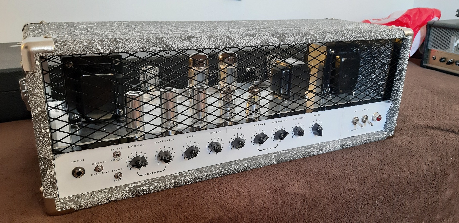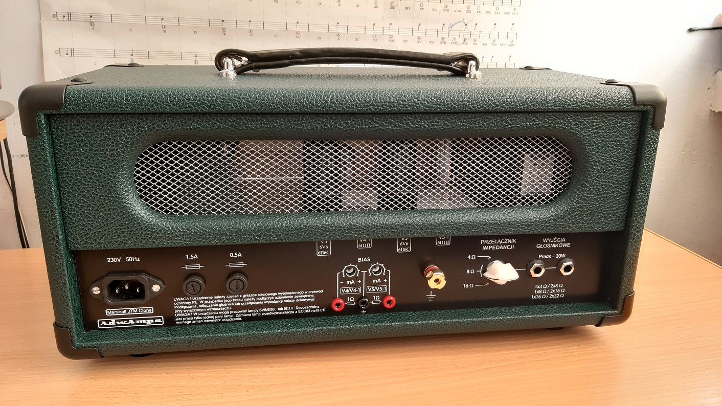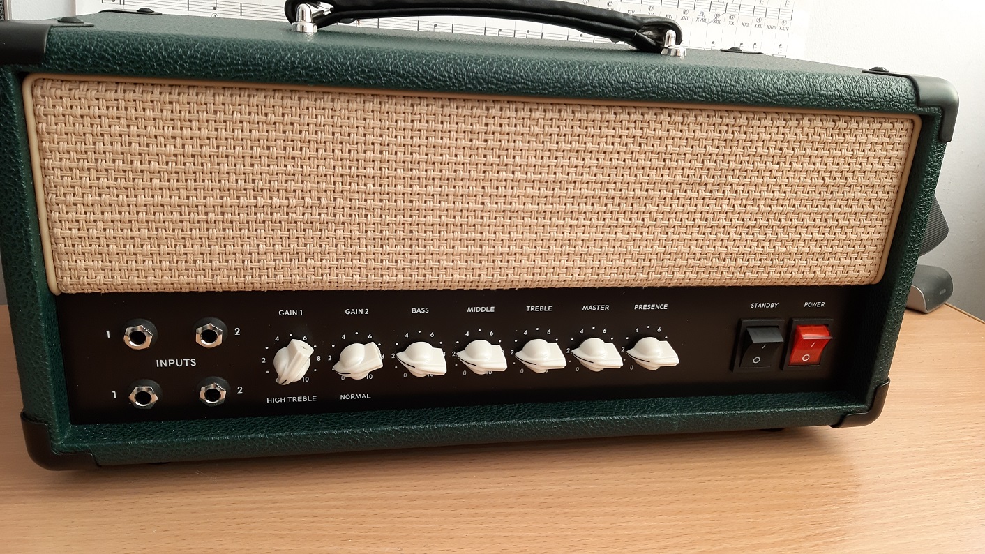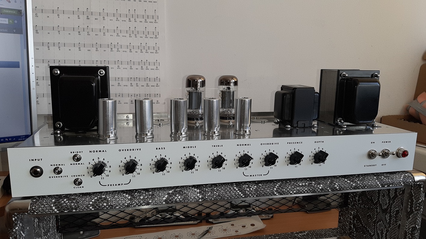 Jakiś czas temu z gratów które nie chciały się sprzedać zrobiłem sobie wzmacniacz, bardzo prosty. Oparty o Marshalla JTM-a. 18W mocy.