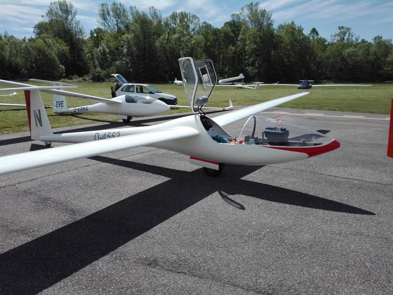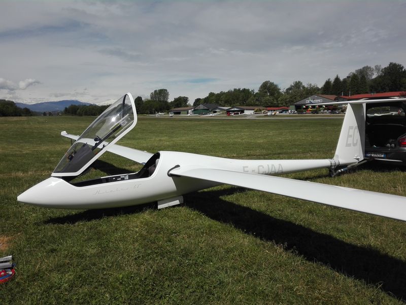 Z właścicielem tego Nimbusa (Włoch, żona Polka) udało się porozmawiać po locie. Szybowiec należy do klasy old-open, ma 26 metrów rozp. skrzydeł (największy jaki latał). Został wyremontowany w zakładach w Bielsku