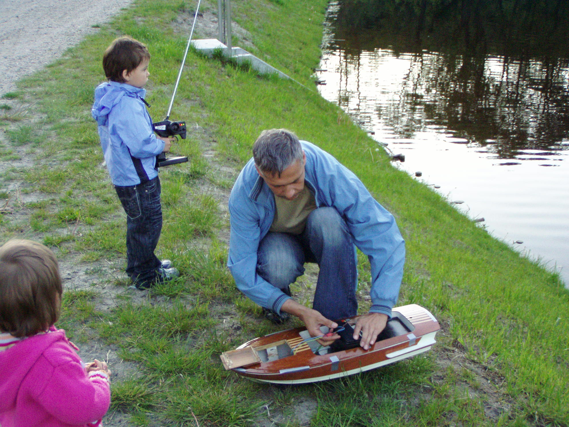 Kiedyś też łódkę popełniłem małemu , nawet jeszcze żyje :D tutaj było testowanie jeszcze z nie przyklejonym pokładem .