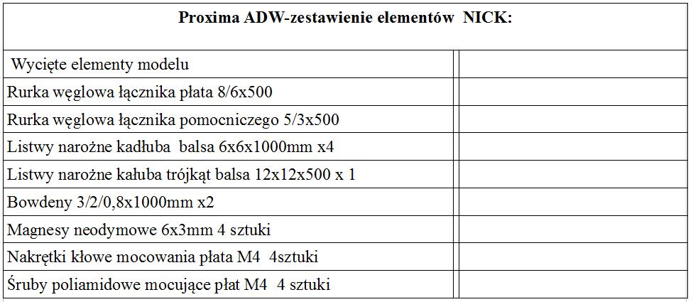 Zapomniałem dopisać ważnej listwy : Balsa spływ na lotki 7x1x30x1000mm. Proszę dopisywać do PW chęć posiadania tej listwy. Koszt to około 10-11zł w zależności od sklepu.