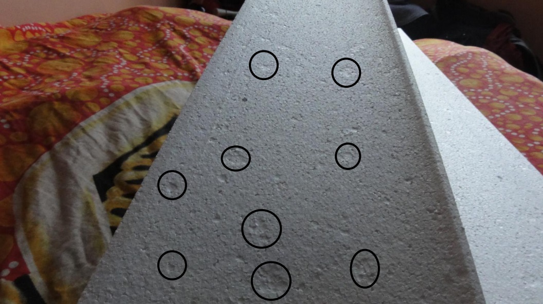 2. Jakość styropianu – jest bardzo dużo miejsc tak jakby ktoś ponaciskał palcami styropian (zaznaczono tylko
