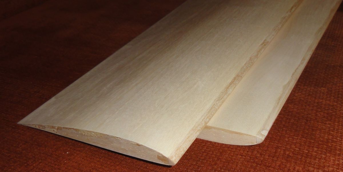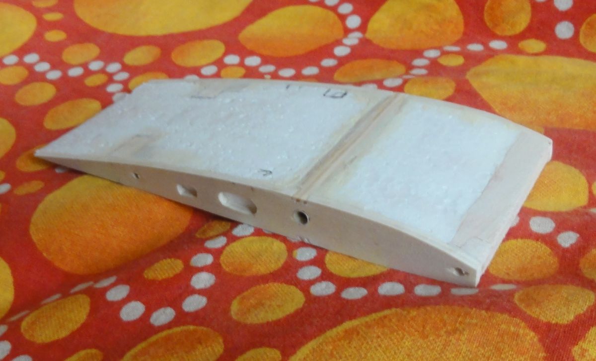 Myślę że można jeszcze nieco zeszlifować fornir, zwłaszcza na końcach i zyskać z 10 gram. Zobaczymy ile ważyć będą gotowe płaty. W porównaniu do wcześniejszych skrzydeł fornirowych - masa jest zadowalająca.