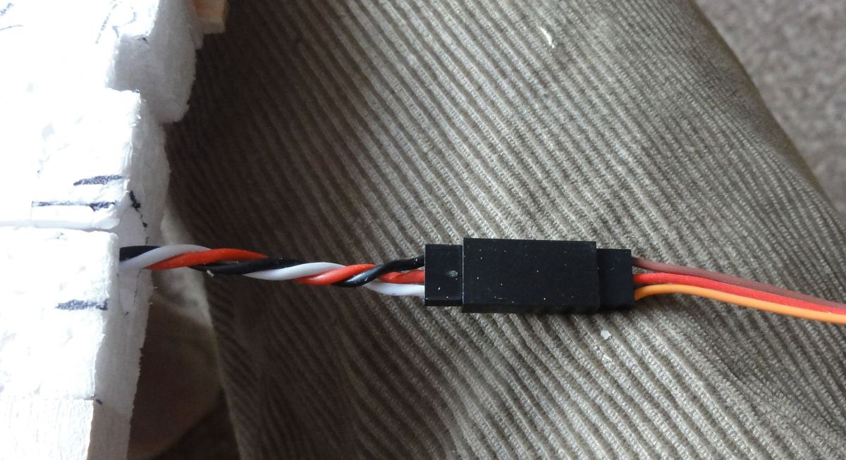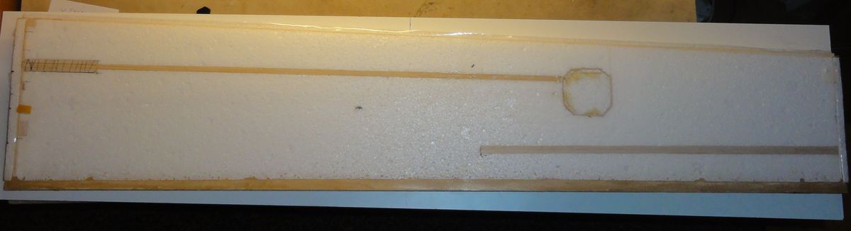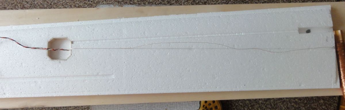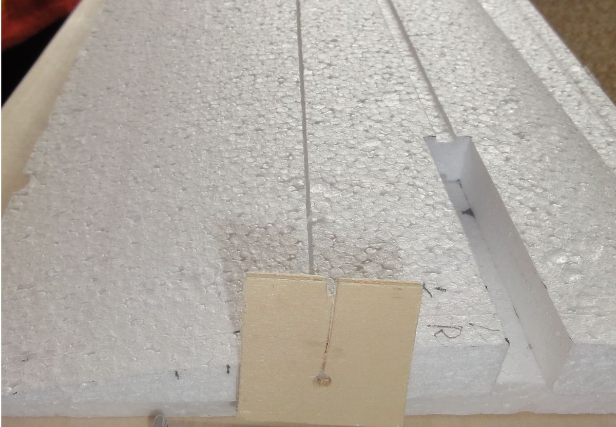 Rowek na przewód serw wycięty za pomocą dwóch szablonów. Drut był nieco zbyt gorący - stąd gruba szczelina :roll: