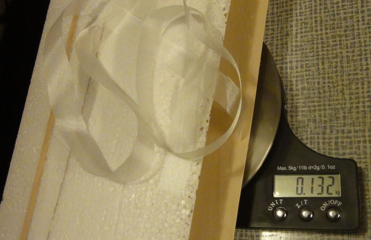 Fornir topolowy szlifowany z 0,8 na 0,6 mm (ręczna szlifierka oscylacyjna). Chciałem kleić obie strony jednocześnie, jednakże miałem wiele wątpliwości i na próbę poszła tylko wierzchnia część. Masa przed klejeniem 132 g (w tym 11g przewód serwa):
