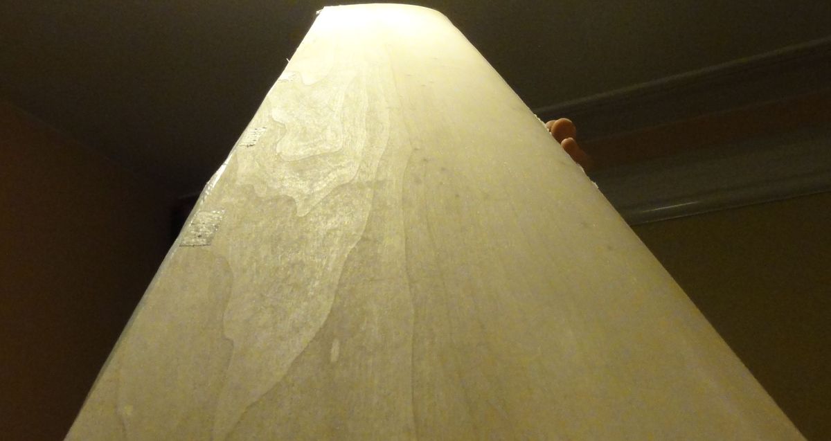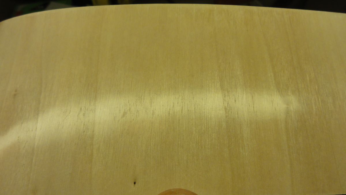 Ilość użytego lakieru prawidłowa. Może za mało szlifowałem przed ostatnim lakierowaniem? Przetarłem tak aby nie było błyszczącego się lakieru. Może powinienem odpylić na mokro zamiast na sucho? Bałem się wilgoci bo kiedyś skrzydło zwichrowało mi się podczas bejcowania (była nieco inna sytuacja ale strach pozostał ;).