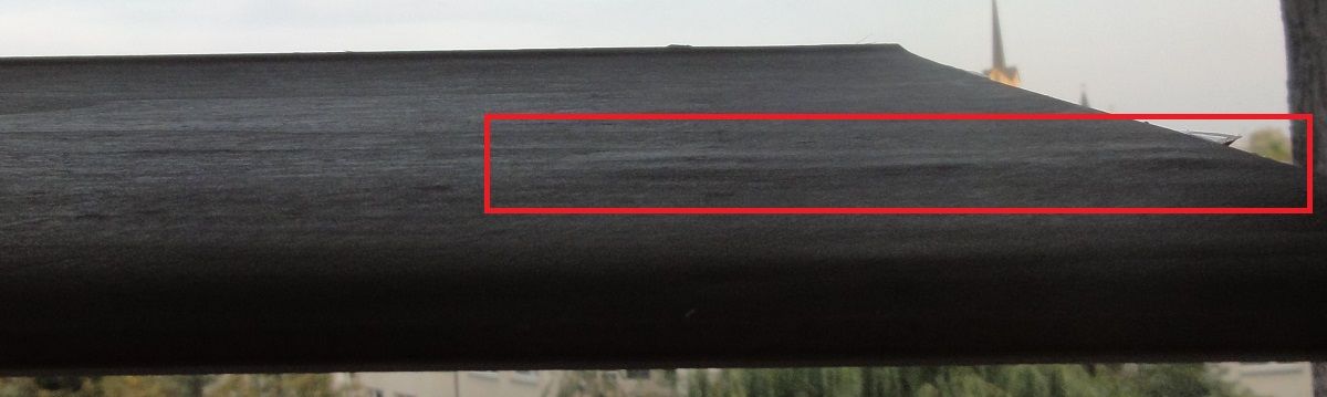 Pokrycie dolne przyłapane taśmą dwustronną do negatywu (ustalenie pozycji). Na spływ tkanina 50 g/m² dla wzmocnienia, na resztę klej poliuretanowy: