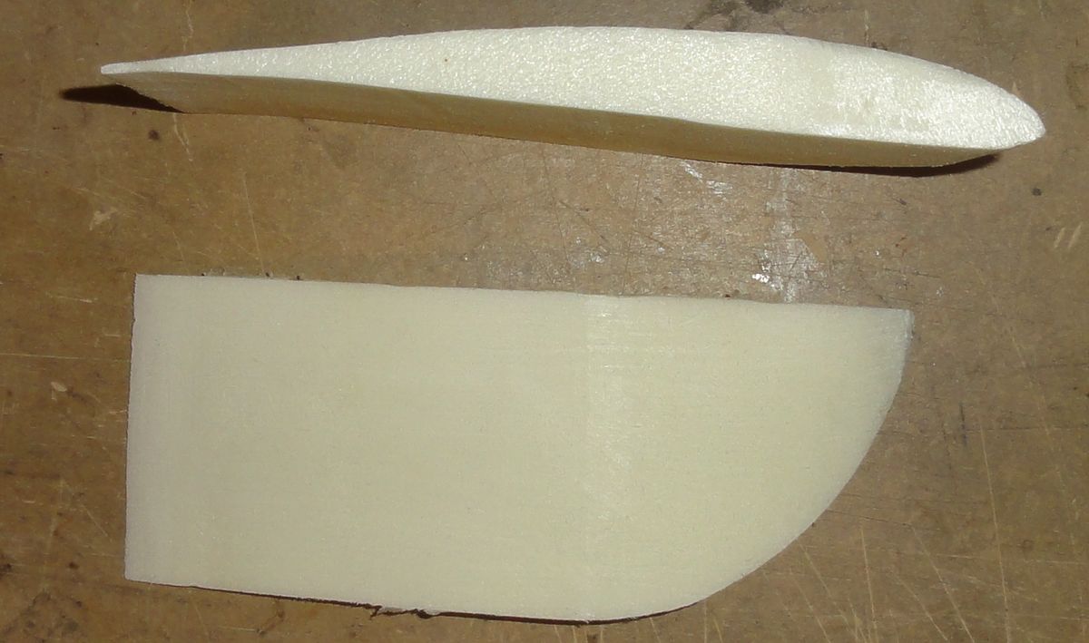 Następnie końcówki skrzydeł - wykonane z laminowanego styroduru. Na zdjęciach jeszcze przed końcowym szlifowaniem:
