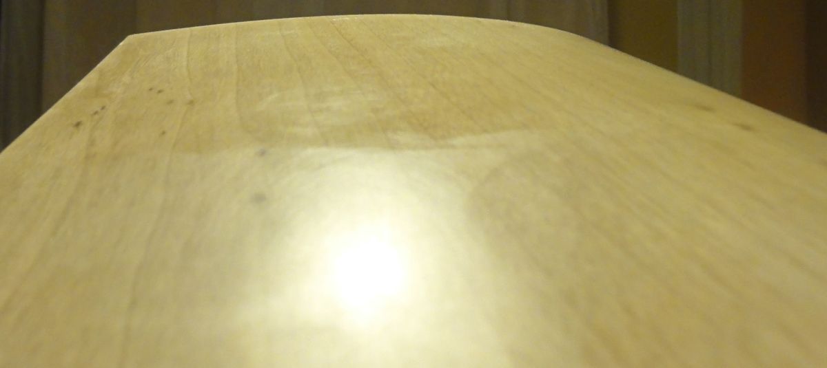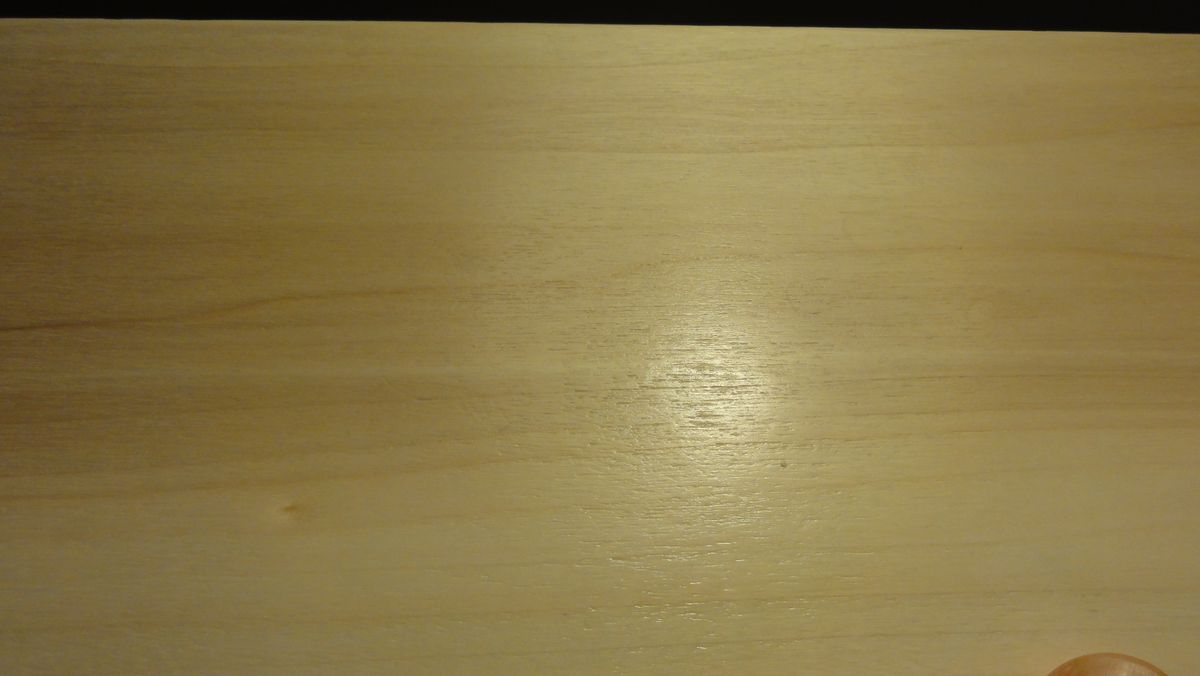 Nie wszystkie bruzdy zniknęły ale większość tak. Na pewno mogłem mocniej szlifować przed końcową warstwą lakieru i i odpylić wilgotnym ręcznikiem papierowym.