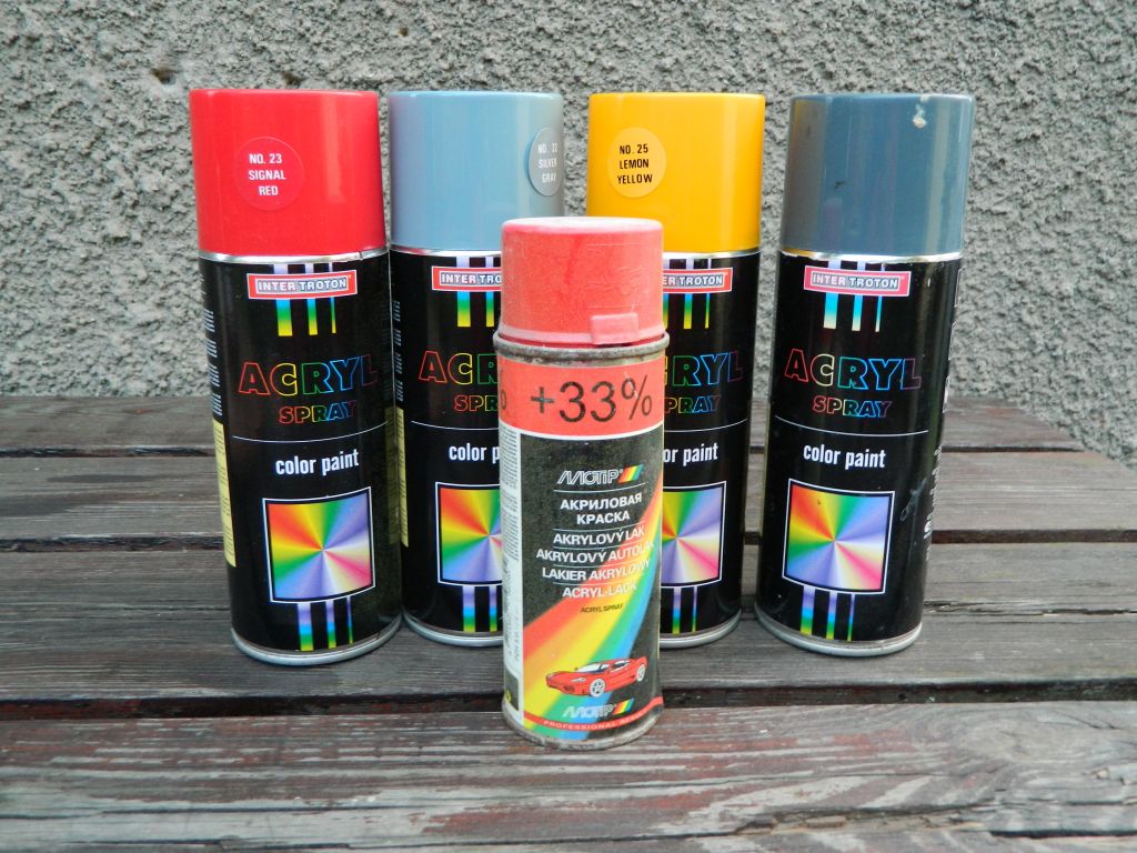 Używam zasadniczo lakierów dwóch producentów, Inter Troton - 400 ml cena ok 15 zł - i Motip - 200 ml cena ok 25 zł. W/w lakiery w spraju mają są lakierami akrylowymi. Bardzo dobrze się aplikują, szybko schną - ok 2 h - i bardzo dobrze obrabiają się później papierami ściernymi. Nie są odporne na wszelakie rozpuszczalniki, włącznie z alkoholem metylowym zawartym w paliwie modelarskim. Do odłuszczania powłok lakierniczych tylko benzyna ekstrakcyjna(!). Same powłoki też nie są odporne na zarysowania, uderzenia itp. Ale łatwość aplikacji - malowania - przemawia za nimi. Maluję sprajami końcówki płatów , owiewki kabin i inne różne drobne elementy. Moja uwaga.....lepiej położyć 4-6 cienkich warstw lakieru, po każdej warstwie przeszlifować papierem 600-800, niż jedną , dwie.....zacieki gwarantowane. Na zdjęciach, lakiery które stosuję i końcówka płata już na gotowo, ADW-1 Z "Amok".