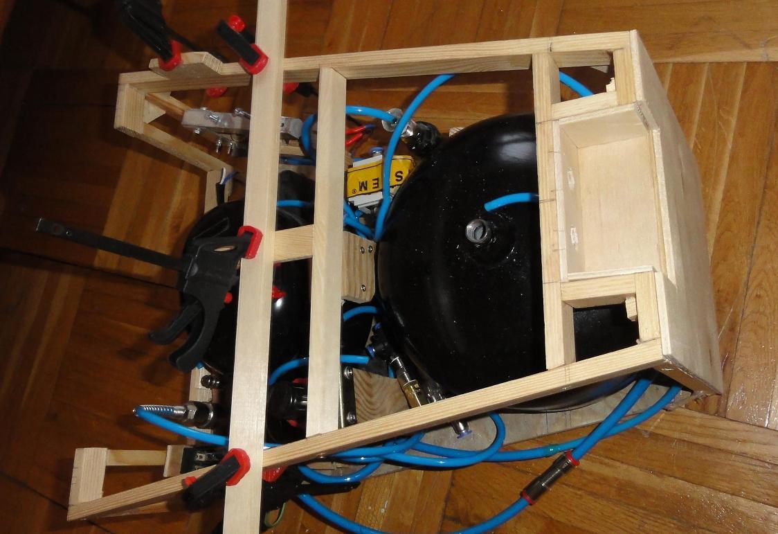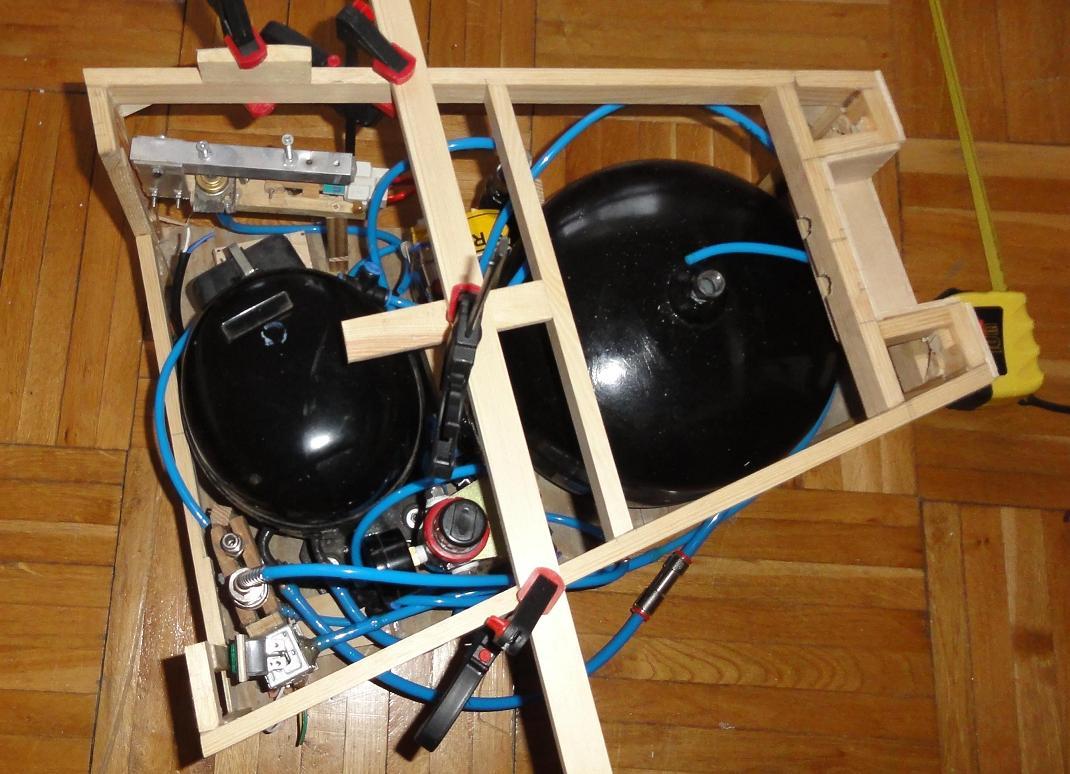 Przyznam że trochę zabawy z dobraniem odpowiednich odległości oraz sprężyn było. Próbowałem też zamiast styków wykorzystać mikro wyłącznik ale skok jego ramienia był zbyt duży i bezwładność układu wynosiła aż ≈0,3 [bar]. Z przekaźnikiem na 12[V] nie kombinowałem bo dodatkowo zasilacz potrzebny jest i miejsce dla niego - a staram się zrobić urządzenie możliwie małe.