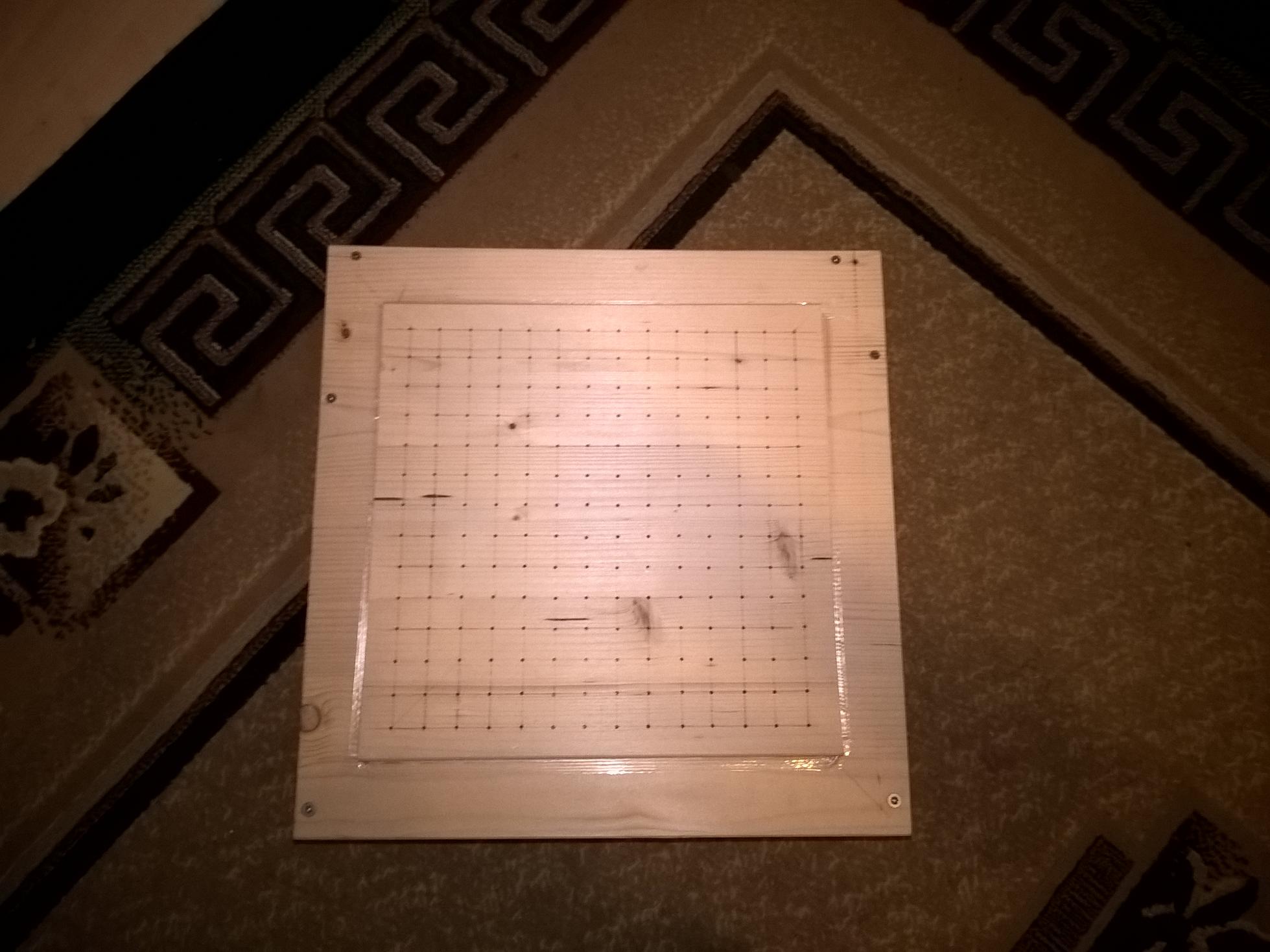 Rozmiar stołu to 40x40 cm. Część robocza 30x30cm. Otwory 2mm, rozstaw 20mm.
