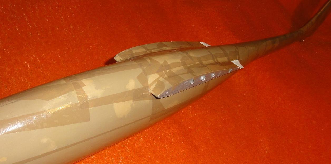 Krok Nr 3Po wygładzeniu całego kadłuba należy go pokryć folia do skrzydeł lub brązową taśmą klejącą do paczek (chyba tańsze). Warto użyć żelazka modelarskiego do wygładzenia taśmy zupełnie podobnie jak do folii. Jest kilka powodów dla których używamy pokrycia: