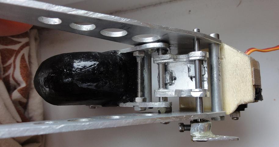 Całość po wstępnym montażu. Po przeanalizowaniu tematu okazało się że jednej tulejki (w miejscu osi obrotu) nie potrzeba. Nie ma sensu zwiększać masy