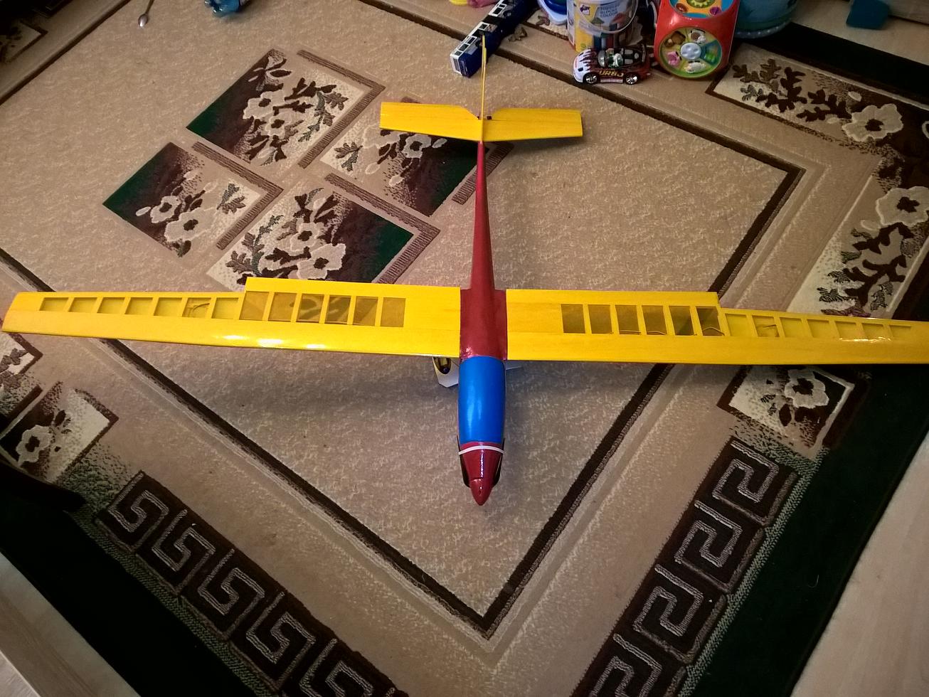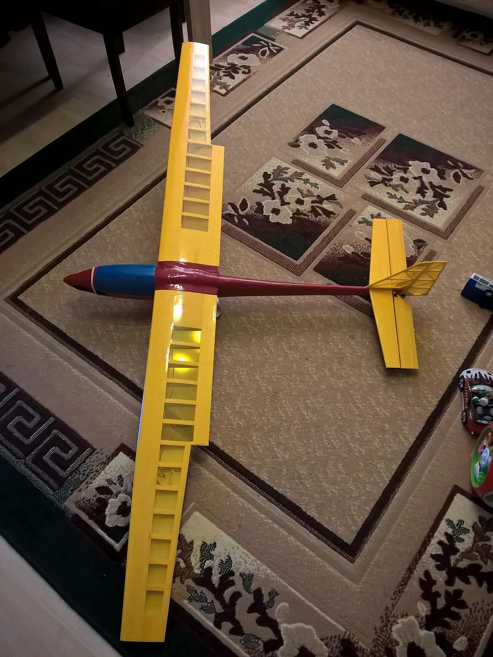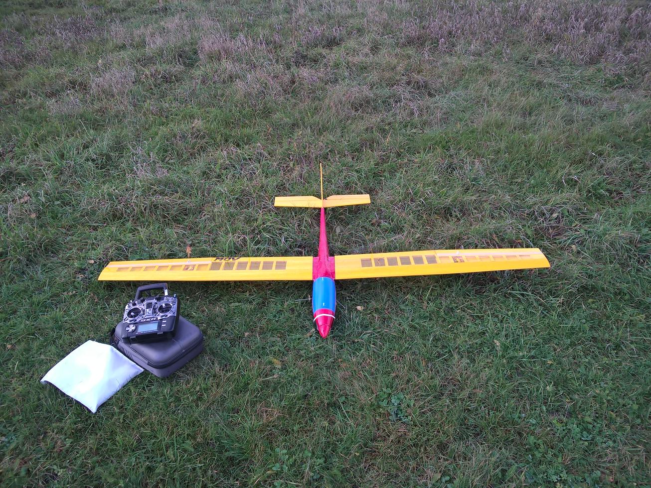 Gratuluję udanego oblotu . Model ładnie trzyma się powietrza, sterów nie brakuje, silnik wystarczający. Po wprowadzeniu paru drobnych poprawek i modyfikacji, szybowiec do latania na co dzień wręcz idealny