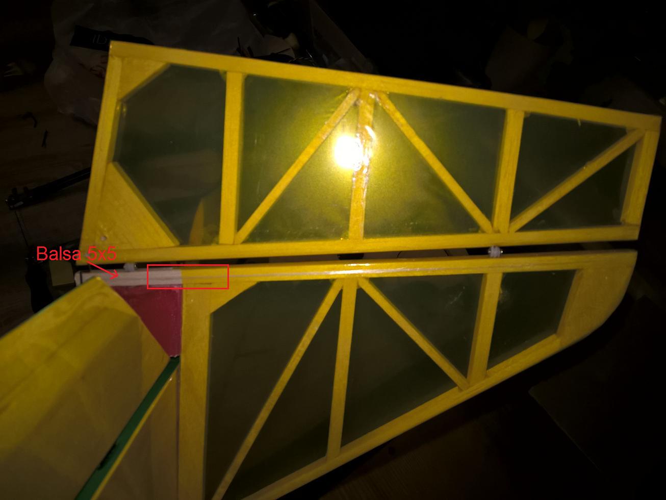 W zasadzie dziwię się, że nie odpadł w locie Statecznik był zbudowany z samej balsy 5x5, pękł w zaznaczonym miejscu - do przerobienia.