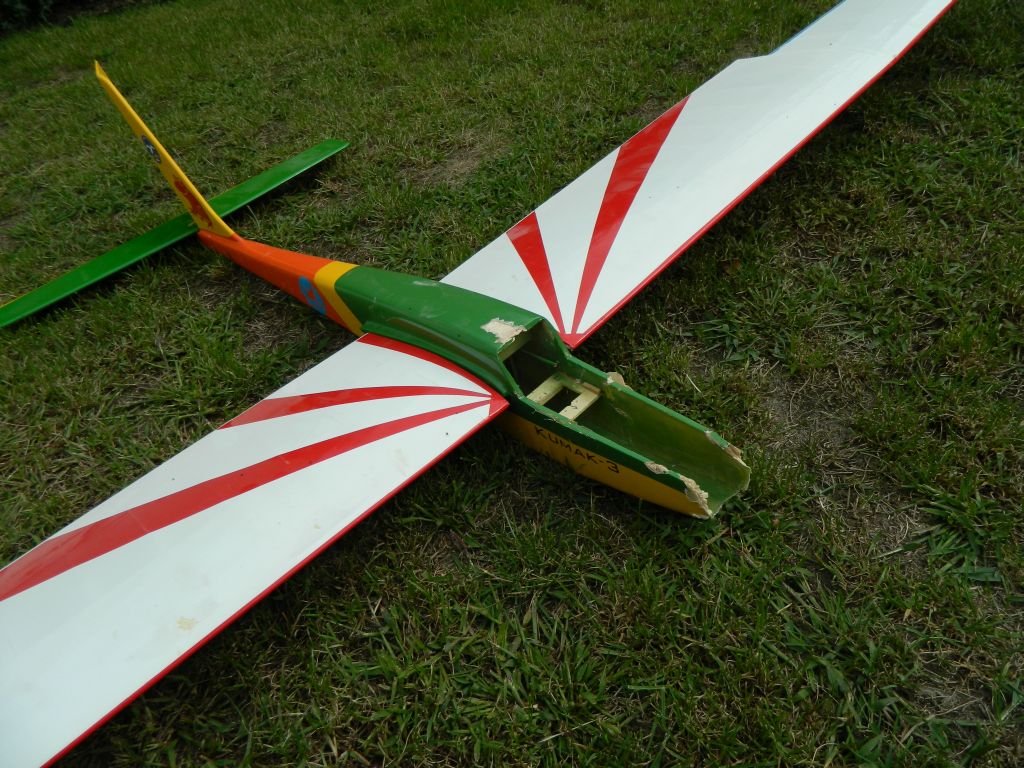 Wpadł mi oto taki pomysł do głowy. Z resztek rozbitych modeli, zbudować jeden, w zamyśle do treningu w coraz bardziej opanowanych przez nas, lotach holowanych za Tukanem. Dysponuję rozbitym w części przedniej kadłubem Kumaka 3 i płatami od "39-tki". Szybka analiza, parę minut w cadzie i udało mi się dopasować płaty do kadłuba. Muszę odbudować przód kadłuba. Zamontować koło podwozia - model ma służyć do treningu holu - ale zasadniczo wszystko mam. Skrzydła są na profilu E374, czyli będzie można przy okazji pofikać :lol: . Temat jak zwykle na jesień/zimę. Na zdjęciach skompletowany szybowiec, baza wyjściowa.