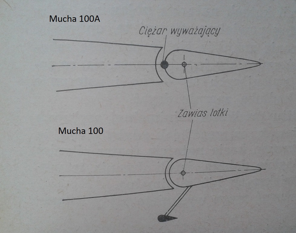 Pamiętam jedynie ,że miała ciężarki wyważające w kształcie kropli przy lotkach i inaczej umiejscowione kółko. Szybownicy raczej unikali jej bo w pilotażu była bardziej drętwa. Natomiast Mucha 100A to już inna bajka.