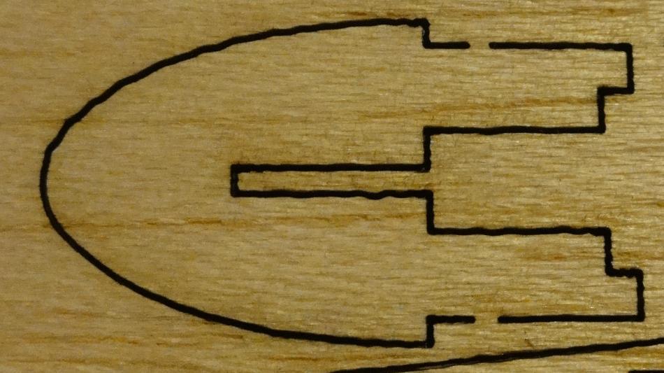 Szablony wykonałem ze sklejki. Nakleiłem wydrukowany wzór, wyciąłem i doszlifowałem do pożądanego wymiaru. Następnie wycięte szablony przytwierdzam na bokach i wycinam - najpierw górny obrys, potem dolny. Po wycięciu górnego obrysu, za pomocą małych kawałków taśmy dwustronnej (około 5x5 mm) przyklejam odciętą górną część do reszty bryły i wycinam dolny zarys