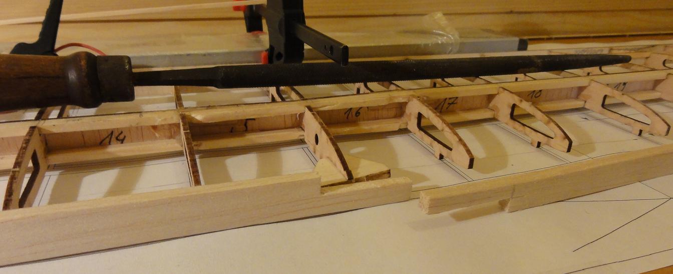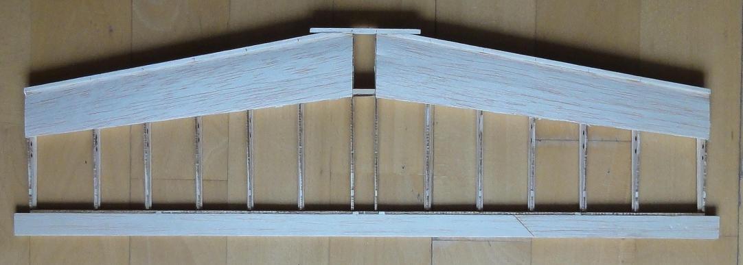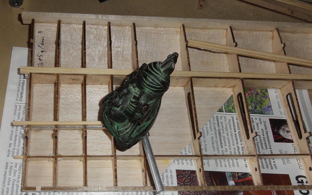 Teraz dokładam balsowe zakończenia, które wycięte zostały na laserze (balsa 2 mm). Odcinam po 2 [mm] styroduru od zewnętrznych części