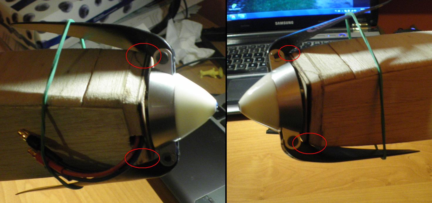 Dokładnie o to mi chodziło. Śmigło mogłoby się bardziej złożyć jeśli trochę materiału zeszlifujesz. W takim układzie stawia większy opór aerodynamiczny i zawsze jest większe ryzyko na uszkodzenie/wyszczerbienie podczas lądowania (natrafi np. na mały kamień w trawie) Zobacz na załącznik - w zaznaczonych elipsach widać że niewiele trzeba zebrać by śmigło schowało się dużo bardziej (widać to najlepiej w prawej górnej elipsie). A jeśli obawiasz się wytrzymałości - i tak będziesz laminował kadłub.