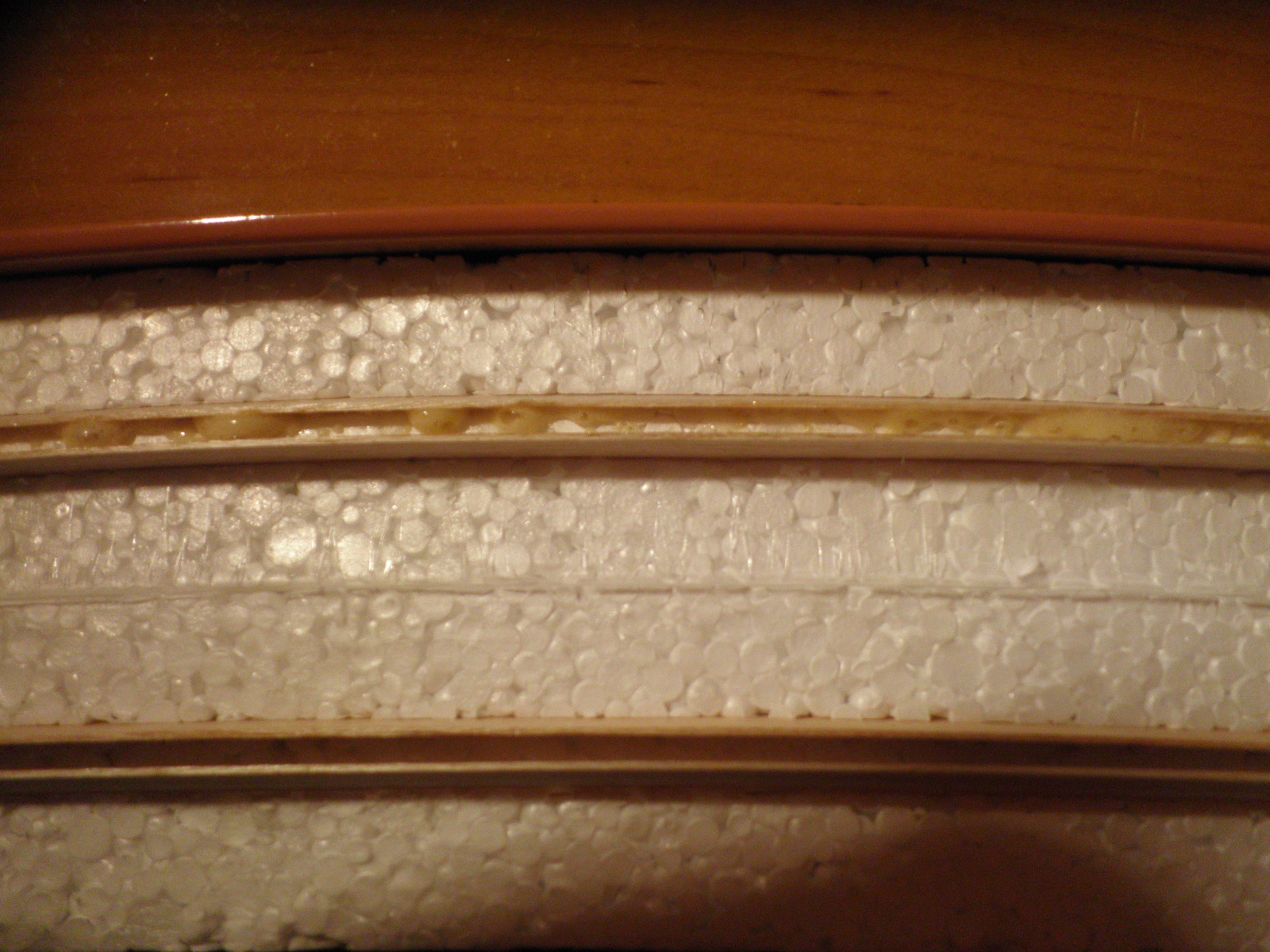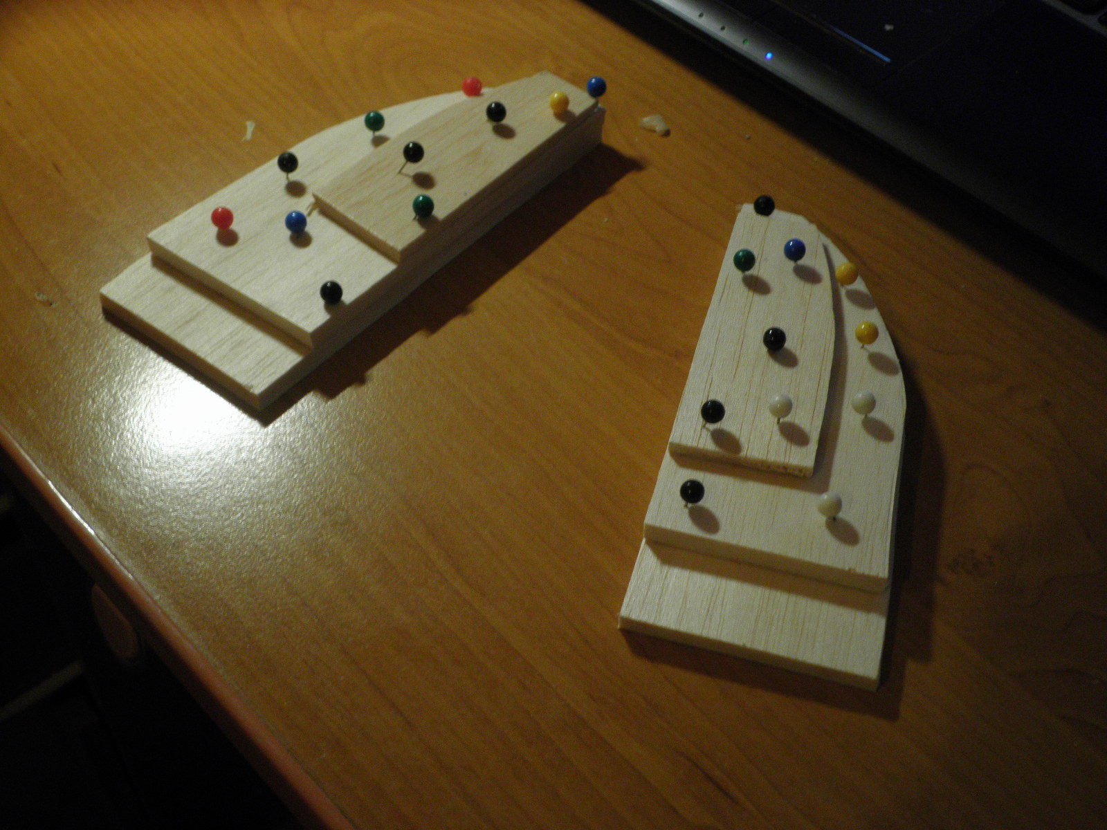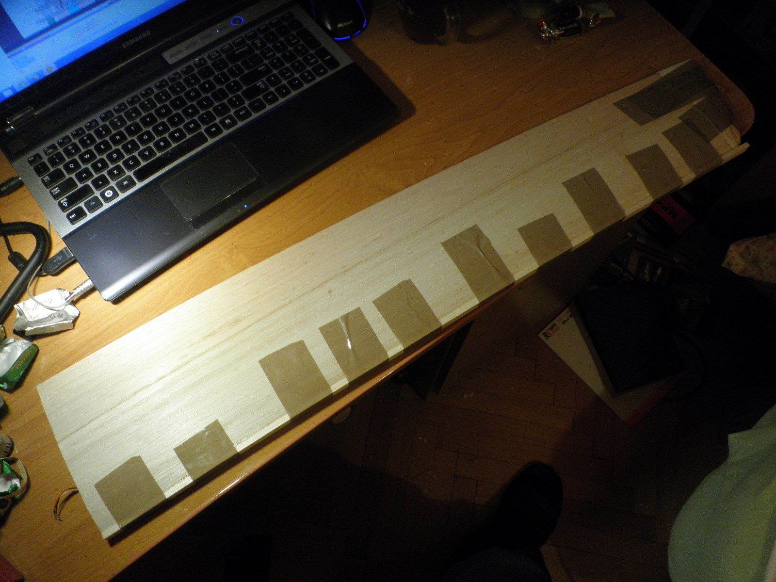 Końcówki zostały wstępnie oszlifowane i wklejone razem z listwami na natarcie ( klej oczywiście Soudal, do którego się coraz bardziej przekonuje :) ). Dodam jedynie że układ wklejania końcówki skrzydła oraz listwy natarcia ( coś w rodzaju litery T ) nie jest przypadkowy.