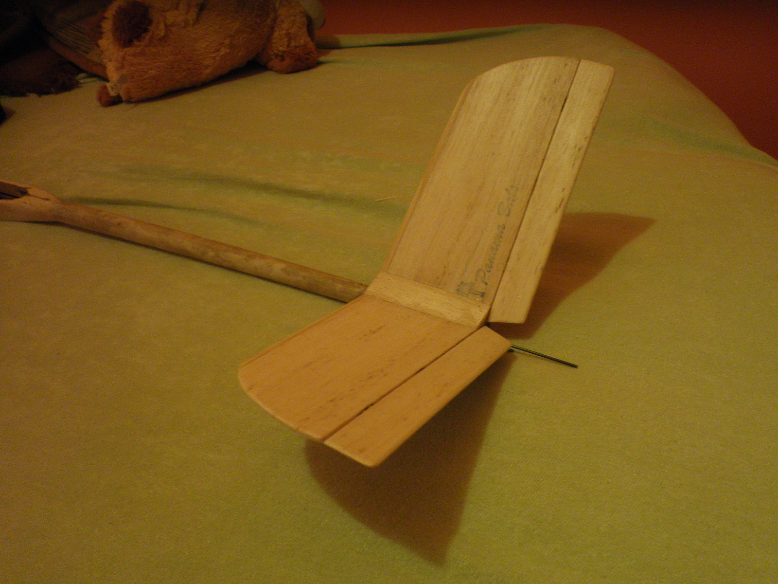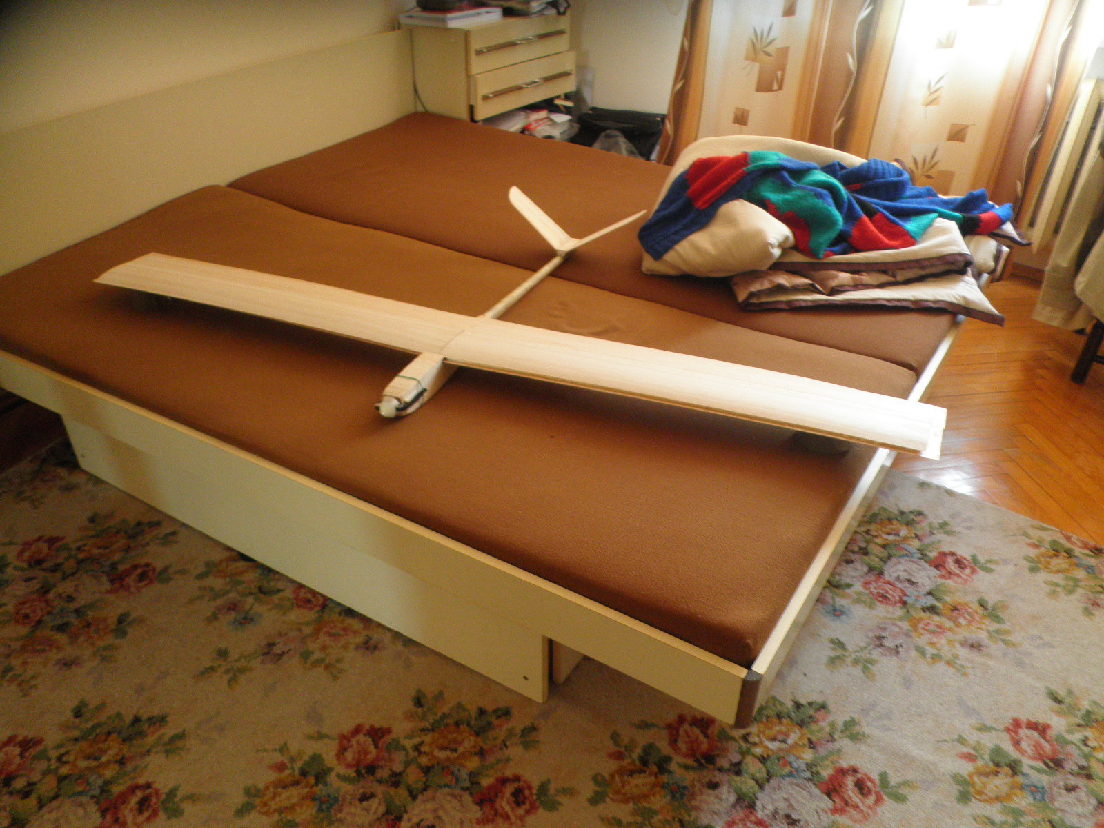 A teraz dalszy ciąg prób działania przy modelu. Zostały posklejane balsowe deseczki do oszlifowania na końcówki skrzydeł.