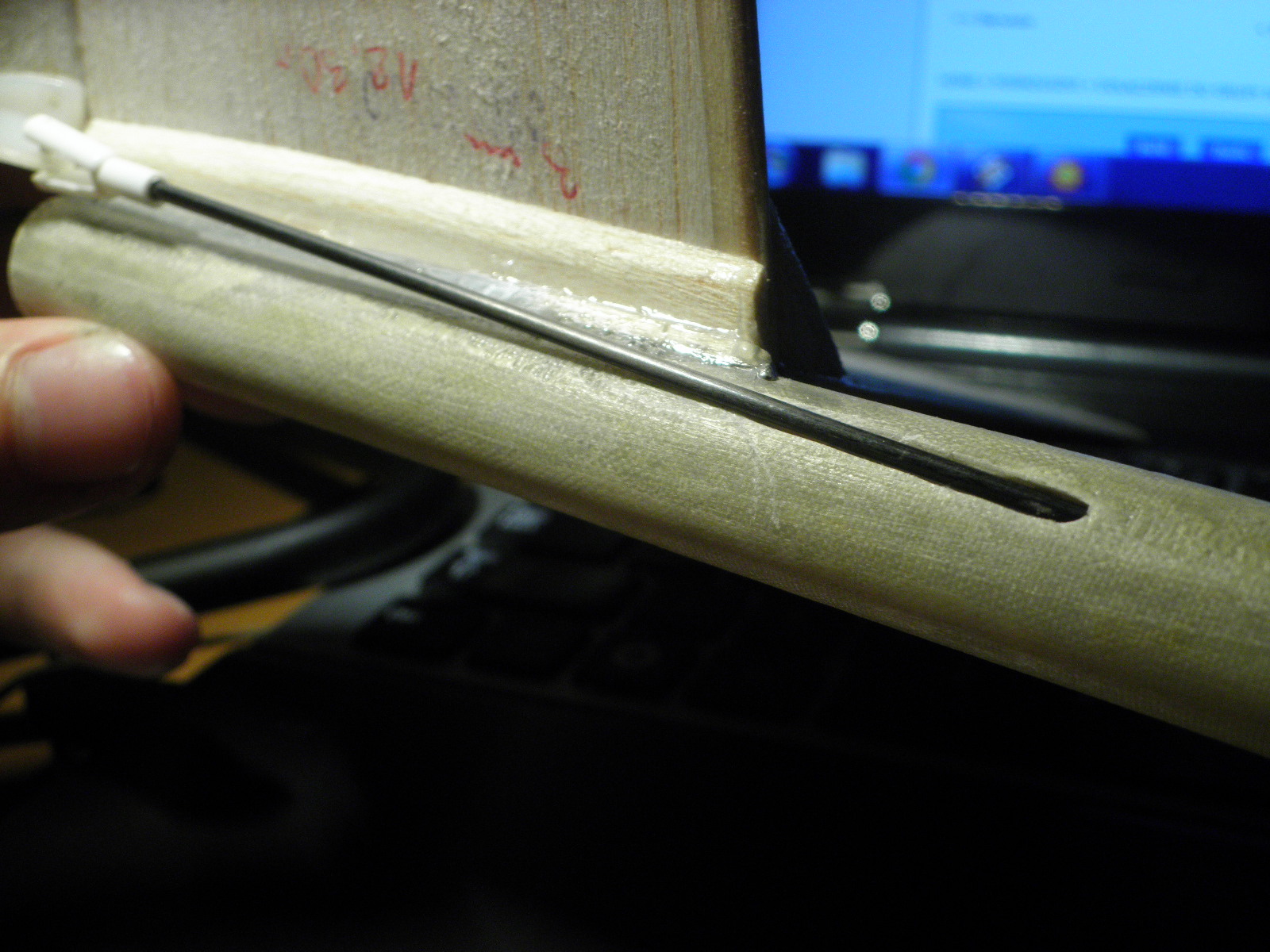 Usterzenie. Niestety pręty okazały się być trochę za krótkie niż zakładałem, więc montaż całkowity steru na razie się przesunie w czasie. Popychacze próbowałem puścić środkiem, jednak bez snapów kulowych za bardzo tego nie widziałem ( nachodzenie na siebie dźwigni steru podczas pracy, wąska rurka ), więc w kadłubie zostały wycięte owalne otwory, dodatkowo zostaną nasmarowane smarem grafitowym w celu zmniejszenia tarcia ( oczywiście w rozsądnych ilościach ).