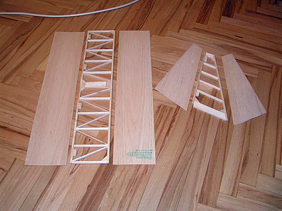 I jeszcze ciężar: to, co na zdjęciu waży 80g. Sztywność elementów z pewnością jest większa niż byłyby wykonane z pełnych deseczek balsowych