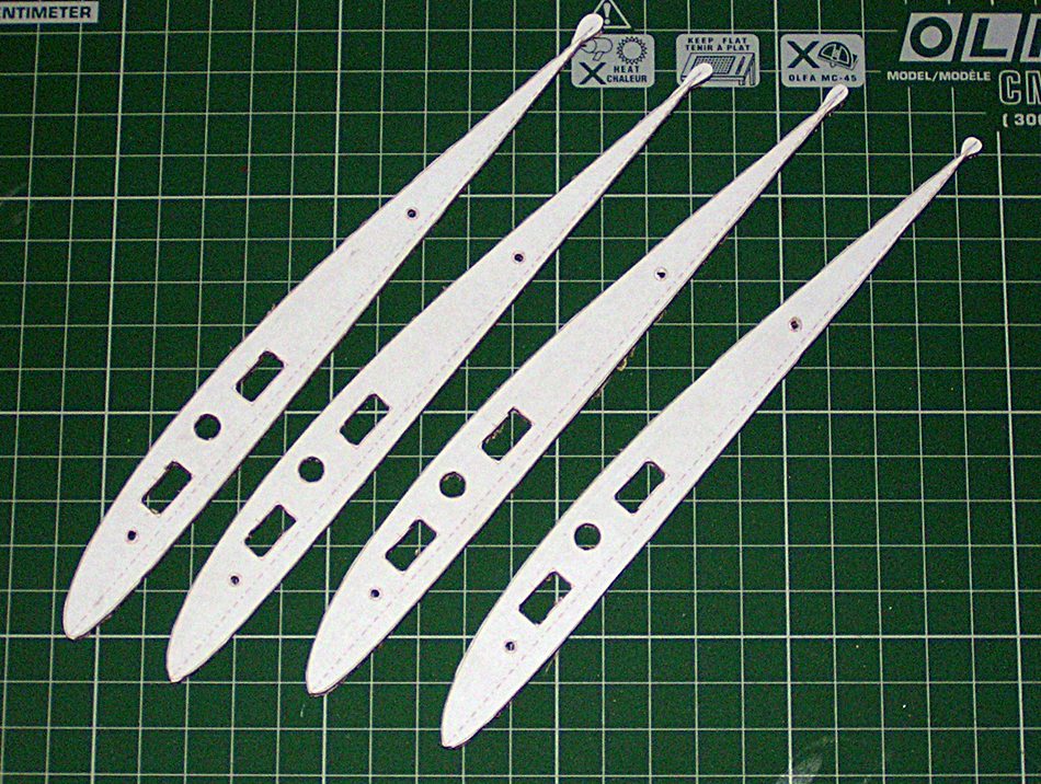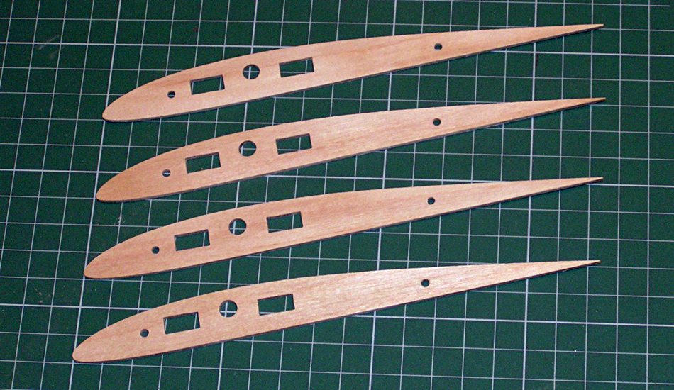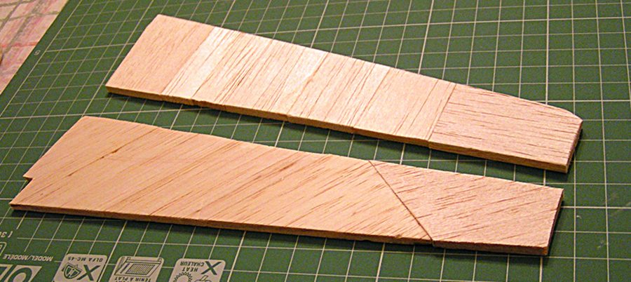 Kolejnym krokiem było wycięcie formatek z balsy 0,8 mm, do oklejenia sterów i stateczników:
