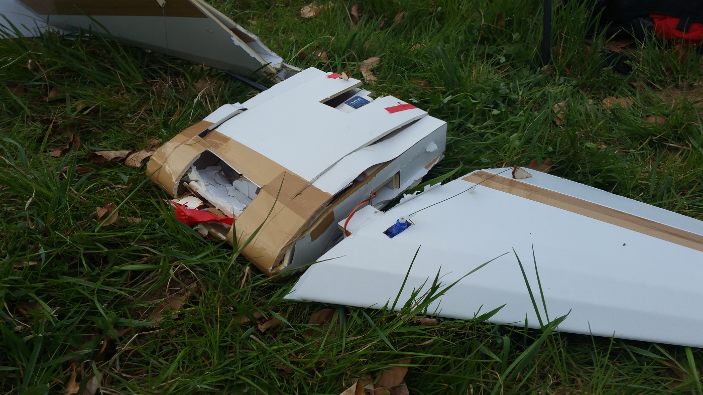 Też udało mi się popełnić skrzydło, a mianowicie Zagi 1,2m. Również długo nie pożyło :-D Po kolejnej kraksie w trakcie startu i uszkodzeniu kamery dałem sobie spokój.