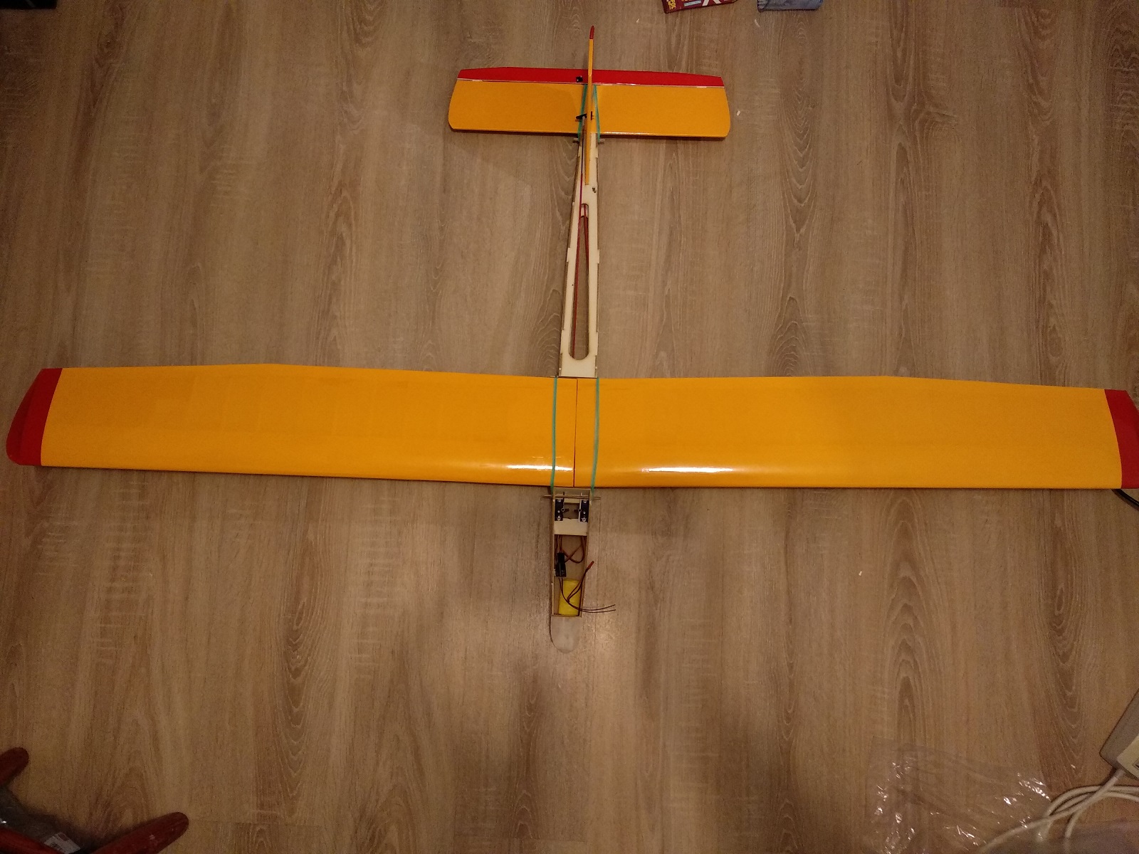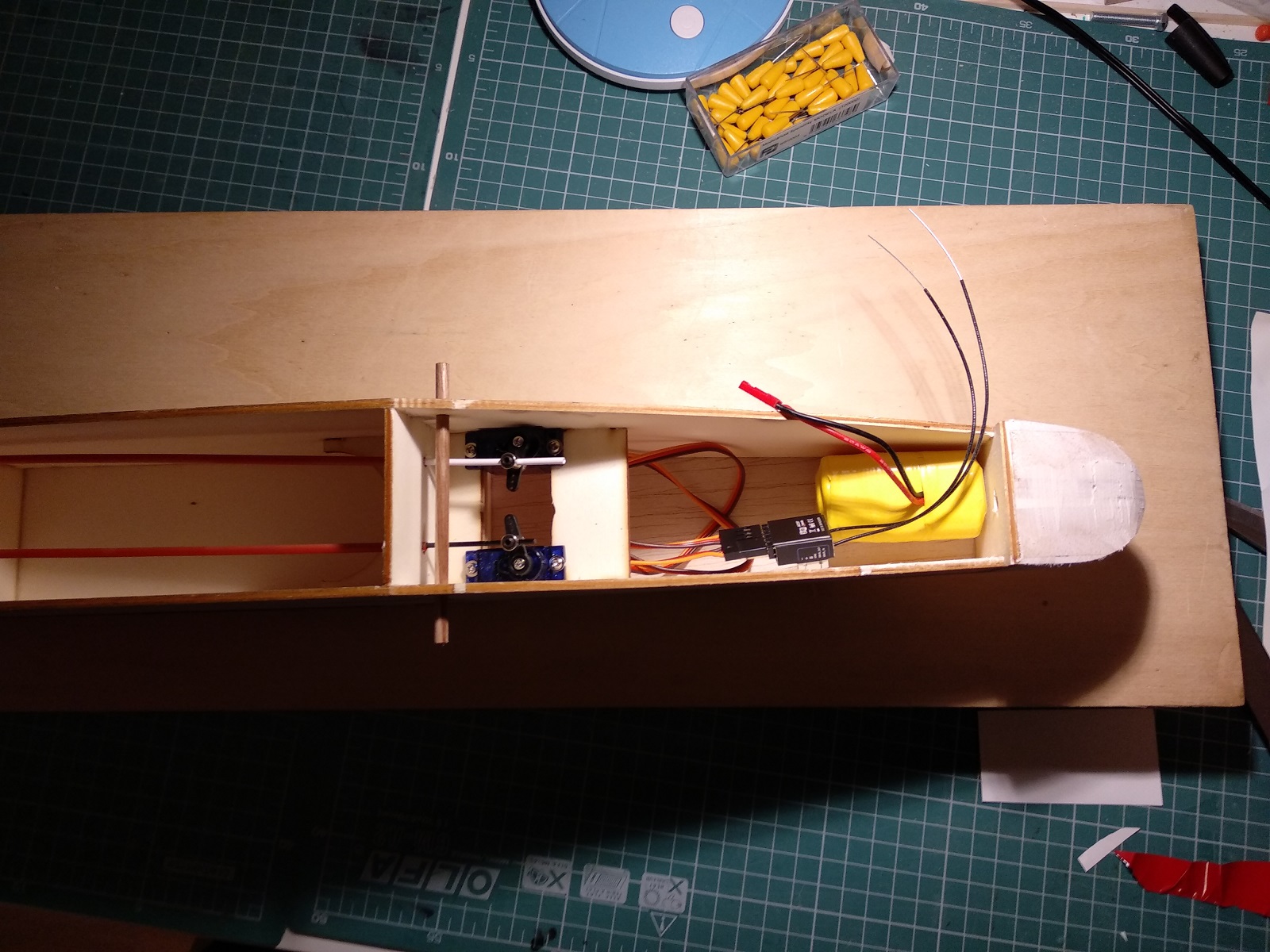 Budowa ukończona. Waga do lotu 740 gram. Wyważenie pakiet 4x NiMh Eneloop + 60g ołowiu, pewnie trzeba by ażurować stateczniki, by odchudzić ogon, ale i tak nie jest źle.