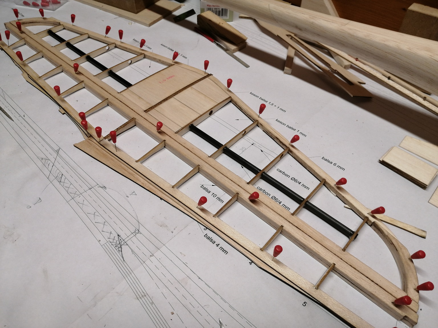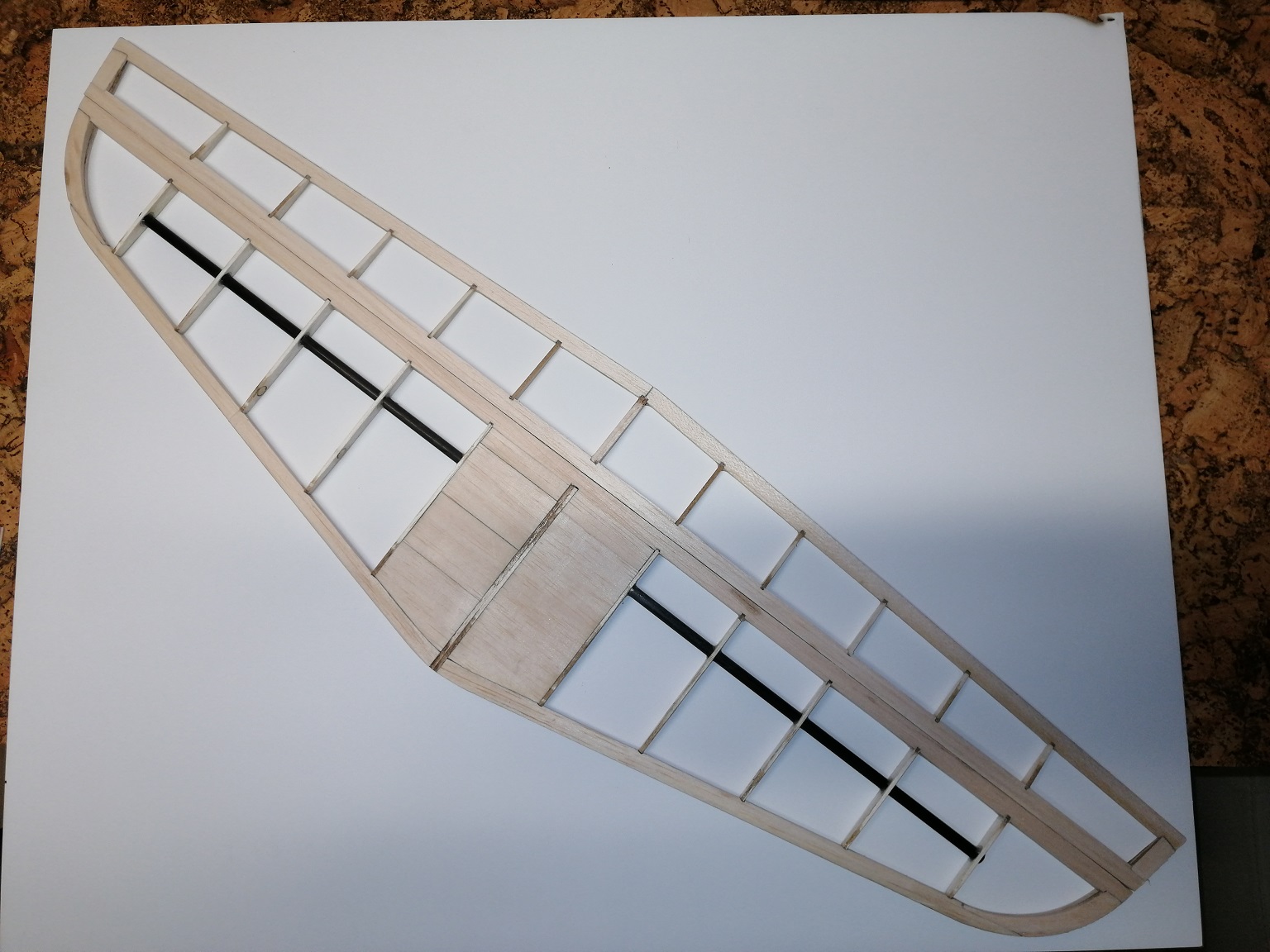Wczoraj skleiłem 3 formatki balsy 1 mm aby z jednego płata 300x1000mm wyciąć pokrycie statecznika poziomego.