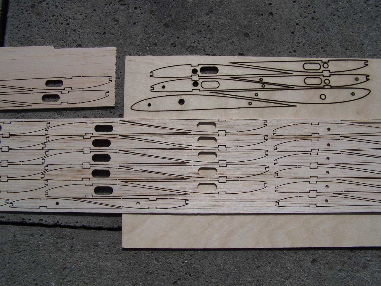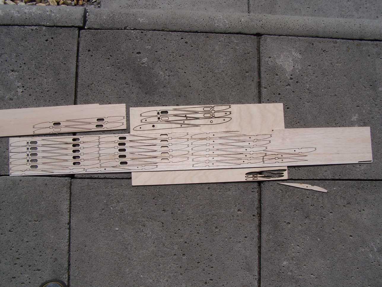 Było to pierwsze wycinanie balsy i sklejki lotniczej w tej firmie. Żeberka balsowe wyszły super. Natomiast do żeberek ze sklejki mam niestety zastrzeżenia.