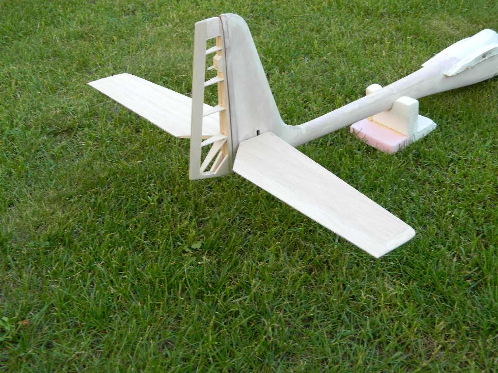 Kadłubik nabrał jako takich kształtów, rownież usterzenie. Nie wiem jak spasować poziomy, narazie zostawiłem ok 1,5 mm odstępu od pionowego.