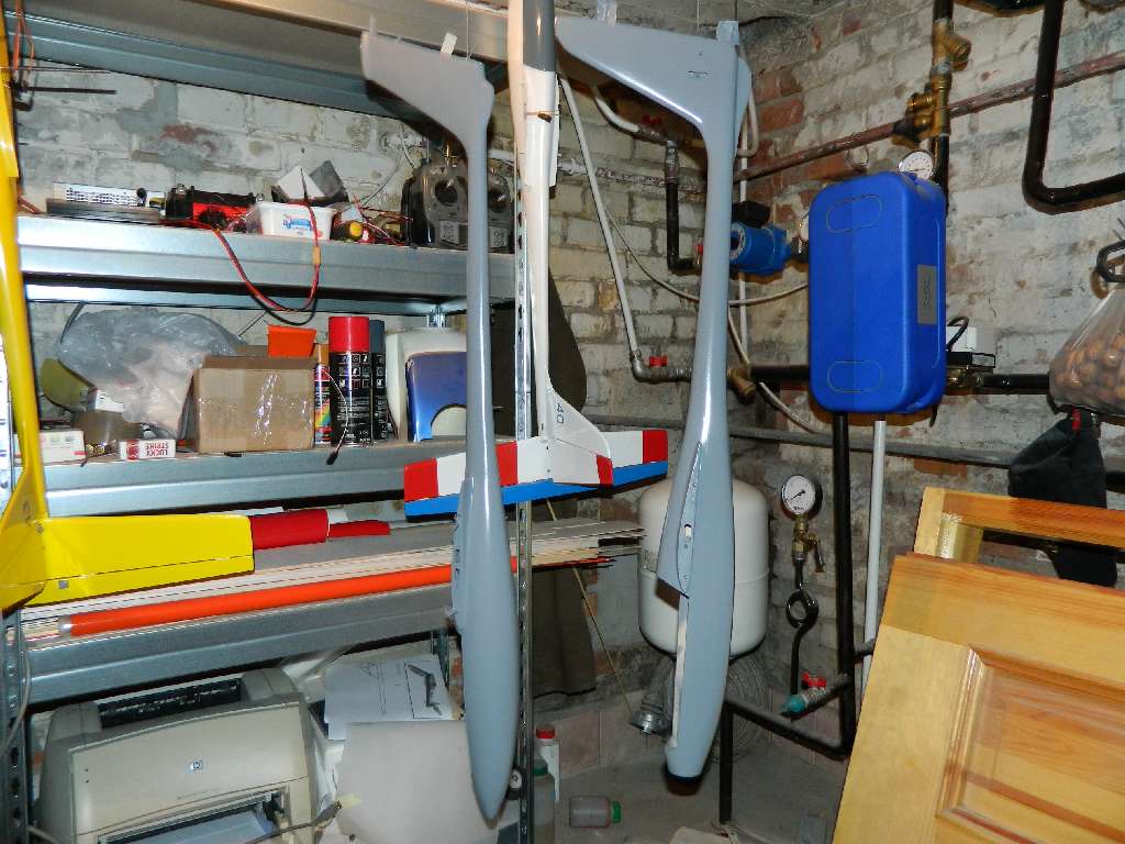 Kadłub szybowca przygotowany do nałożenia szpachli natryskowej. Równocześnie przgotowywałem kadłub ADW-1L Piotrka. Myślę, że w sobotę kadłuby dostaną "płaszczyk" szpachlówki. Nie wiem jak będzie z malowaniem finiszowym....ADW-1M napewno trysnę - czas mnie goni - na początku przyszłego tygodnia, jednak kadłub laminatowy wymaga jeszcze dużo pracy, ale to okaże sie po natryśnięciu szpachli. Na zdjęciach oba kadłuby. Różnica w wadze na ten moment .....20 gram lżejszy kadłub laminatowy.