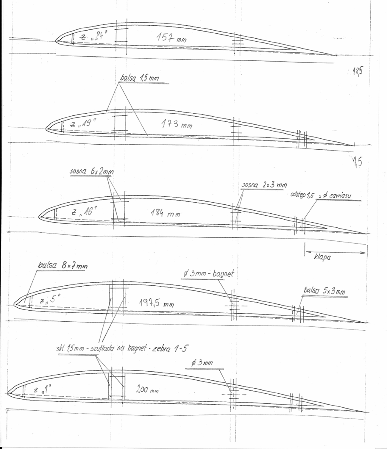 Następnie wkleiłem tylny górny dźwigar (ten szlifowany na trapez) i okleiłem go nakładkami ze sklejki 1,5mm: