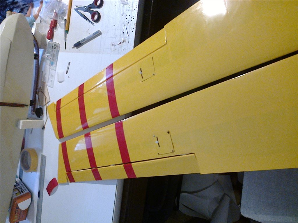 Milo ja przedłużacze wsadziłem przed oklejaniem i zajęło mi to 5 min :lol: Bóla małego miałem z napędem lotek , moje pierwsza koncepcja padła bo odległość jest zbyt mała na dwie końcówki , zrobiłem na przegubach :)