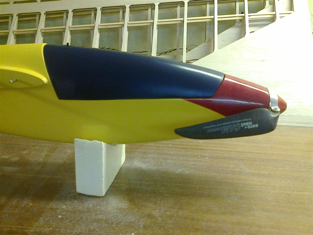 Co do samej konstrukcji to mam parę uwag. Przede wszystkim to zbyt małe otwory pod przedłużacze serw lotek :evil: prawie godzinę przewlekałem kable, zmienię to na formatkach. Druga sprawa to ster kierunku.....moim zdaniem zbyt delikatny i wiotki, też do zmiany.