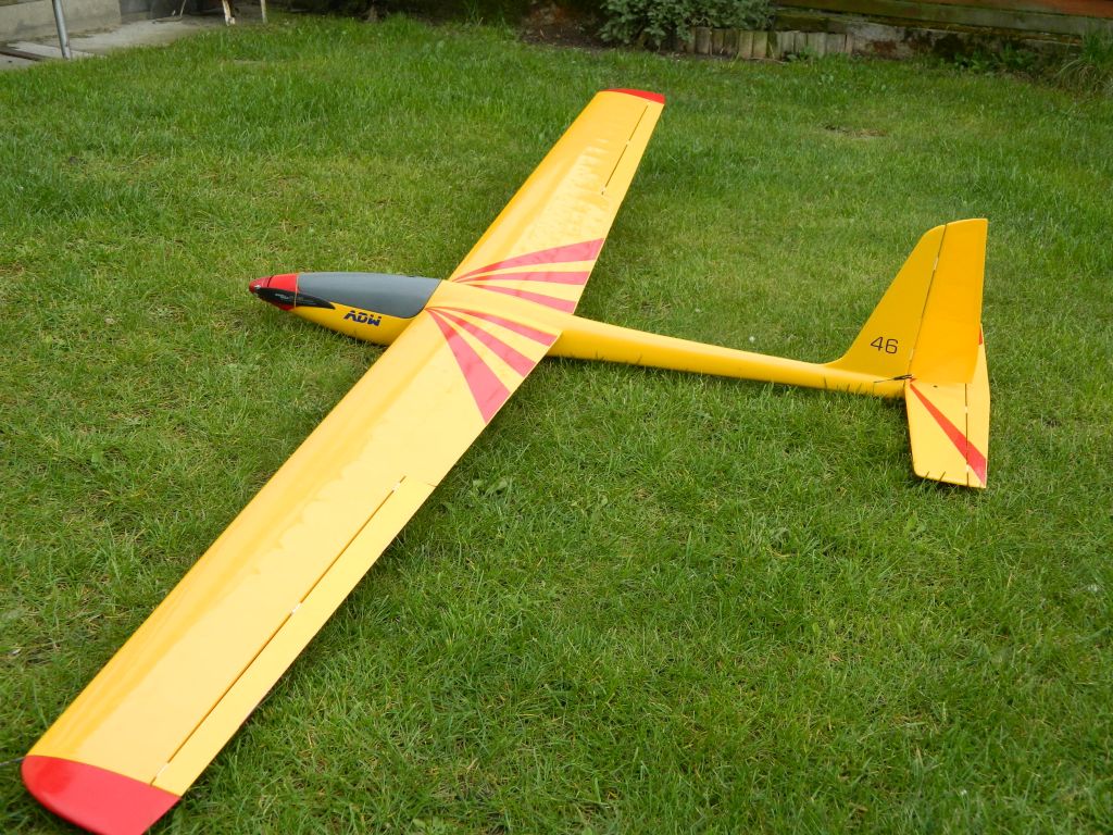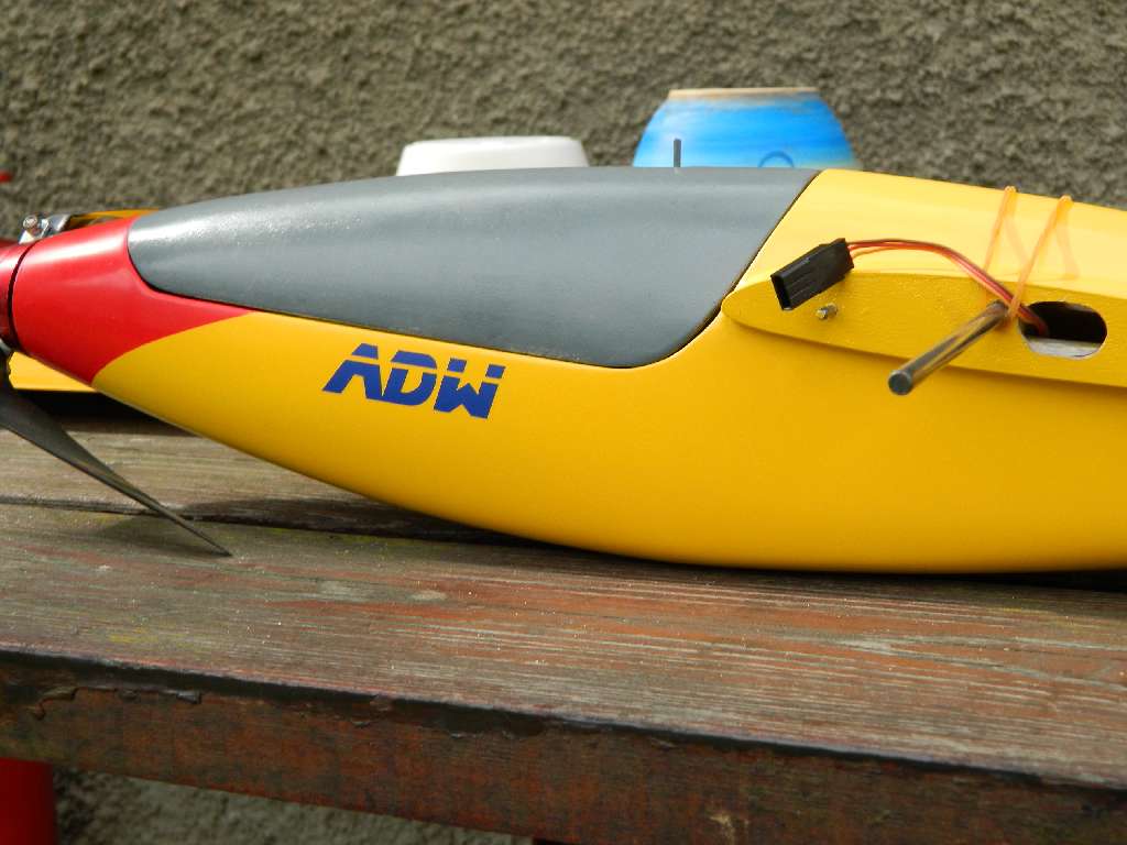 Dorobiłem parę brakujących szczegółów, haczyki do spinania płata, powiększyłem otwory w kadłubie, żeby mieściły się haczyki i przedłużacze serw......no i nadałem numer rejestracyjny w swoim "rejestrze" :) . Dodatkowo pojawiła się naklejka z logo forum ADW.