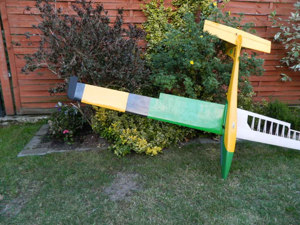 Widok z nowymi płatami. Zasadniczo bryła skrzydeł zrobiona, zostały mocowania serw lotek, szlif i folia. Mam nadzieję do wyjazdu w Bieszczady się wyrobić, taki jest plan :) .