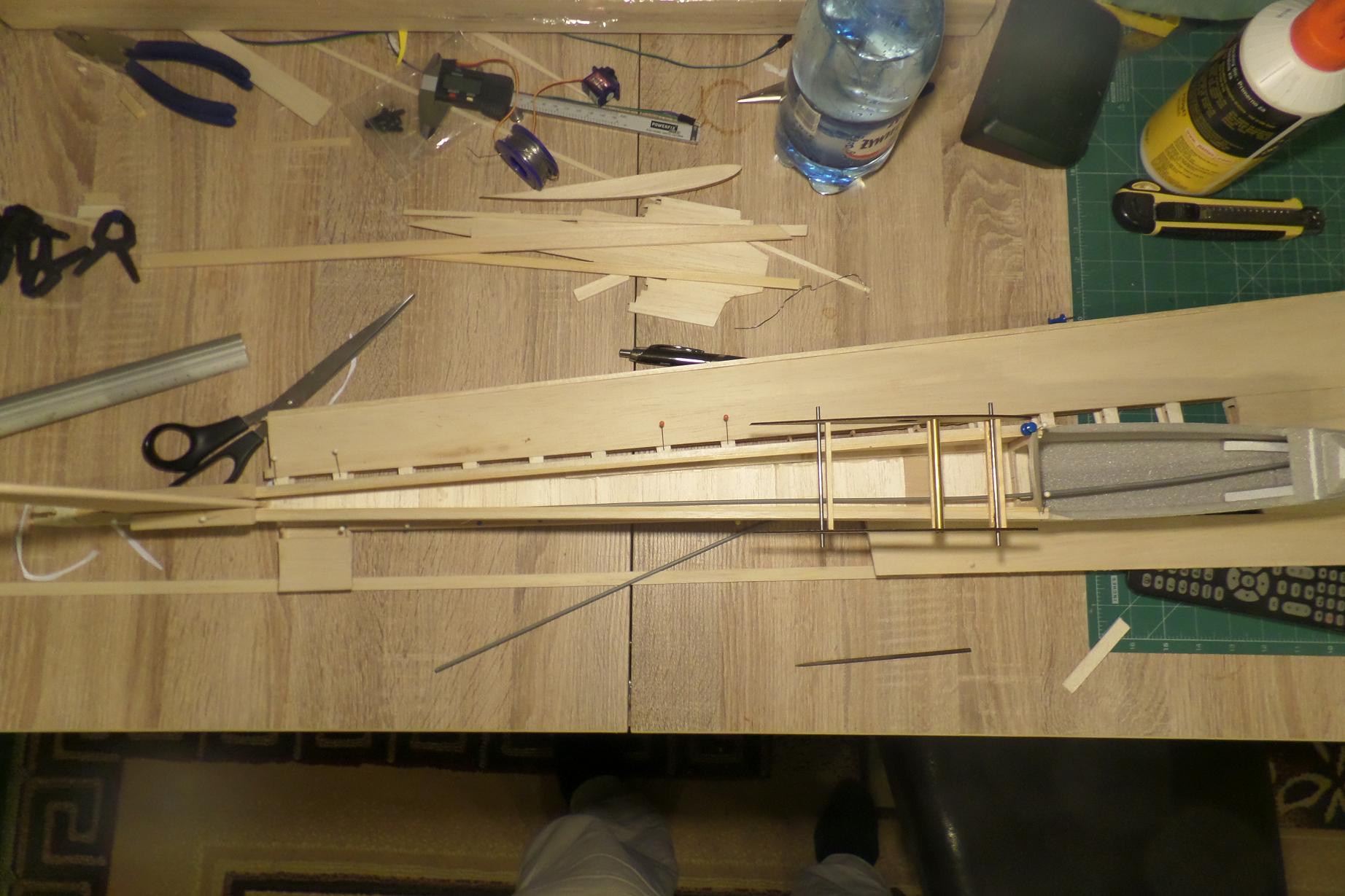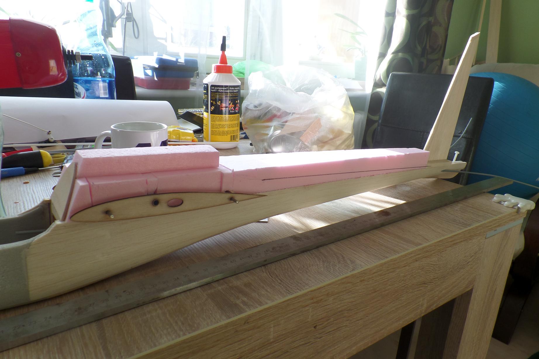 Wczoraj wkleiłem centropłat, więc dziś trzeba było zająć się górą kadłuba.