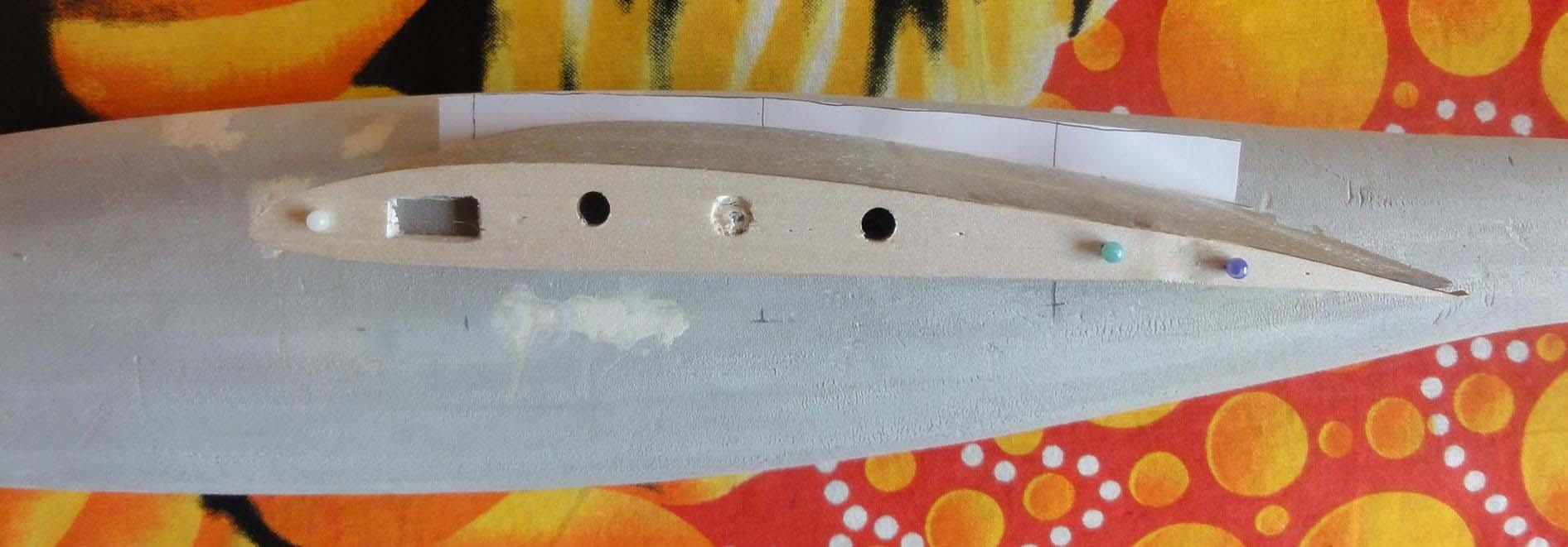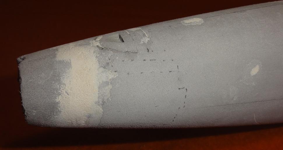 Wycinam styrodurowy centropłat i szlifuję od wewnątrz tak aby uzyskać w miarę małe szczeliny przy styku z kadłubem oraz odpowiednią szerokość. Wszystko to wstępnie bo końcowe szlifowanie wykonam przed ich klejeniem