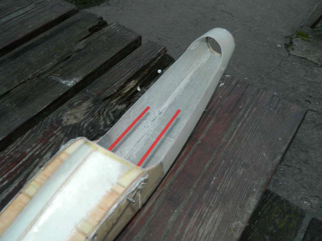 Czemu robisz tak delikatny i lekki przód kadłuba, przecierz musisz potem dołożyć ołowiu w dziób ! (chyba ?)