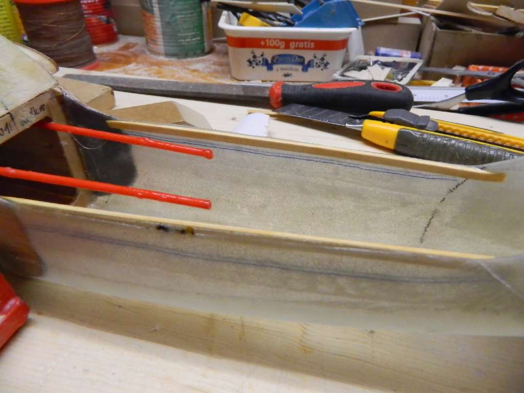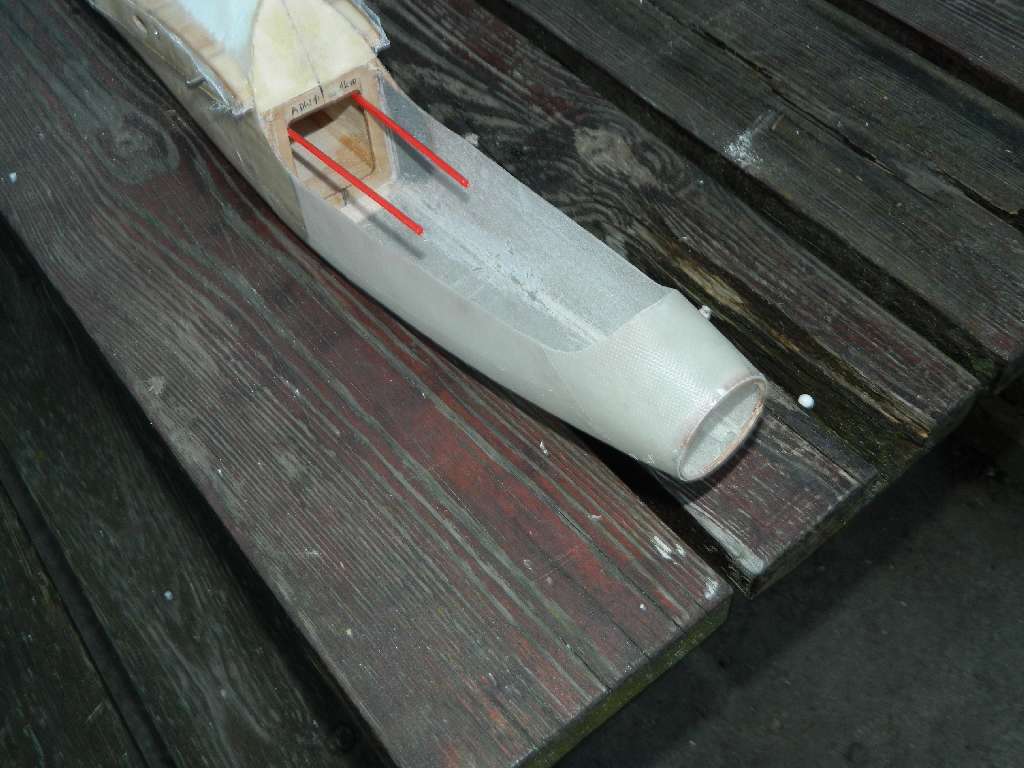 Wzmocniłem krawędź kabinki listewkami sosnowymi 4x2, wkleiłem wręgę silnikową. Teraz czas na szpachlowanie ;)