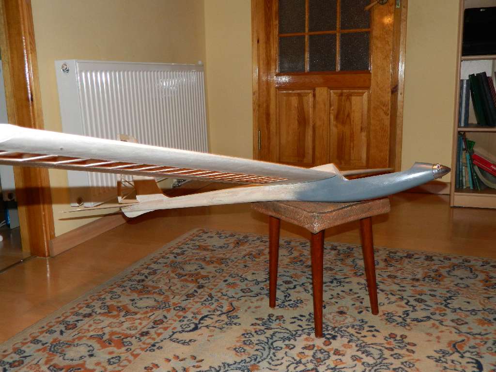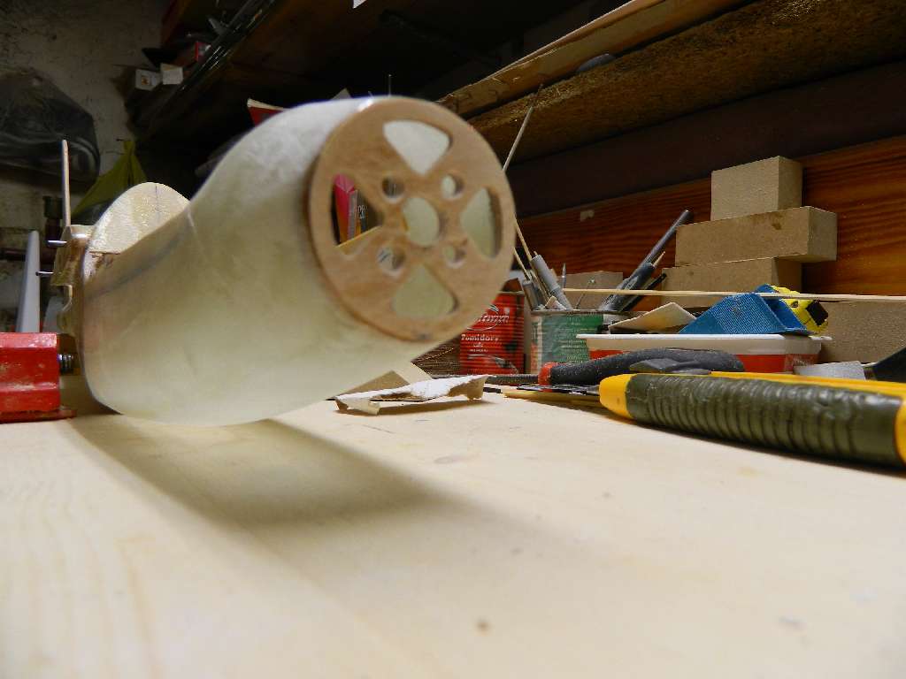 Podganiam troszeczkę z kadłubem. Zalaminowałem cały kadłub tkaniną 163g/m^2, żywica L285. Z części kabinowej wypłukałem rozpuszczalnikiem nitro styrodur. Na tej części są dwie warstwy szkła. Teraz od środka położę jeszcze z dwie warstwy takiej samej tkaniny.....