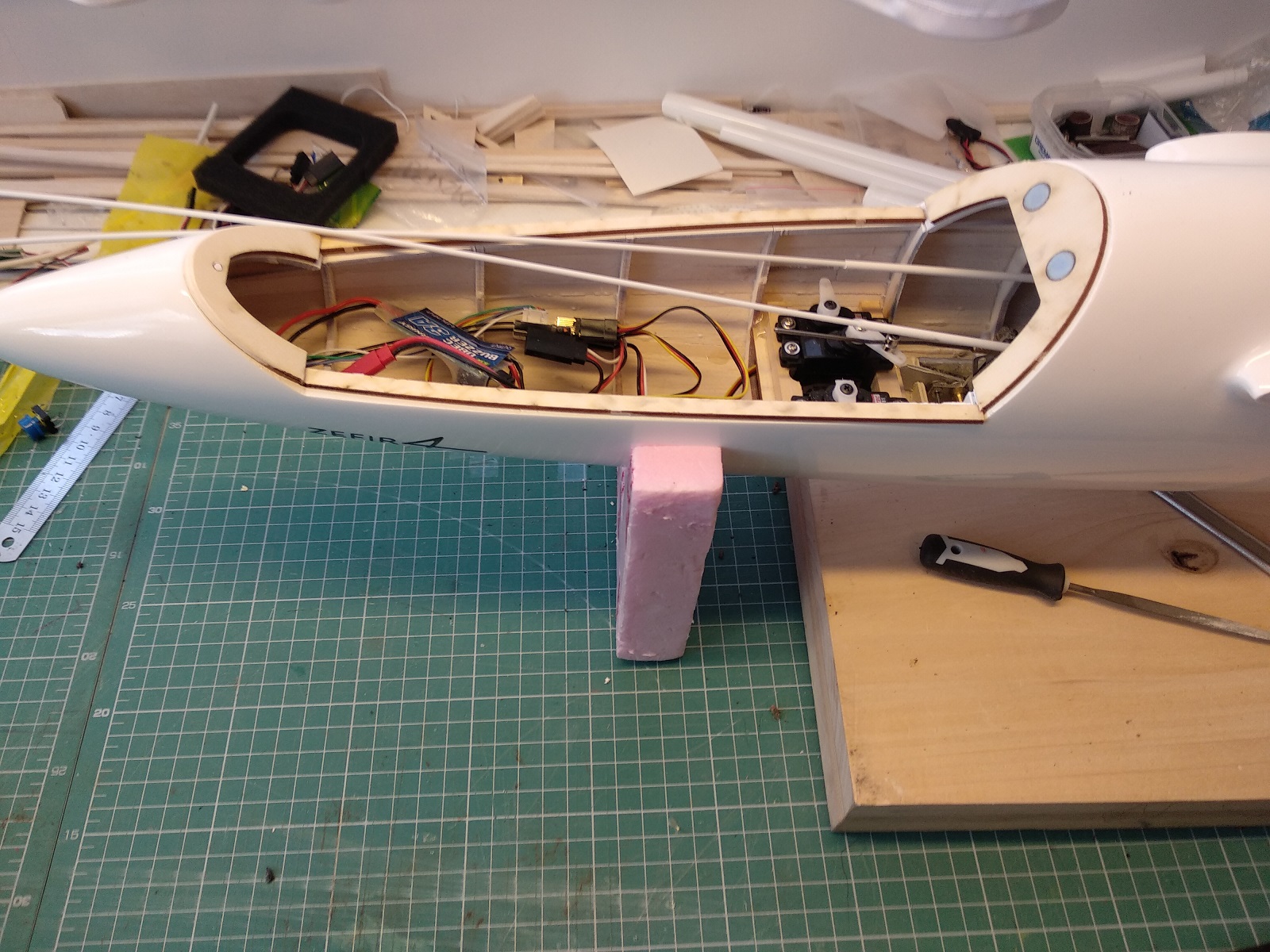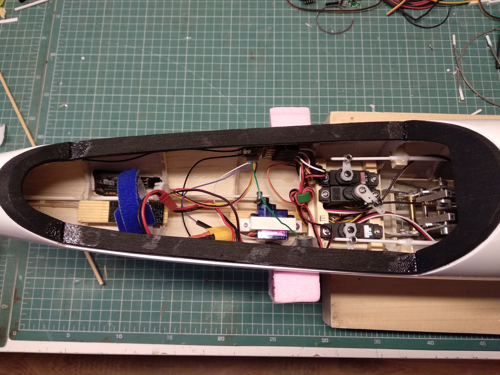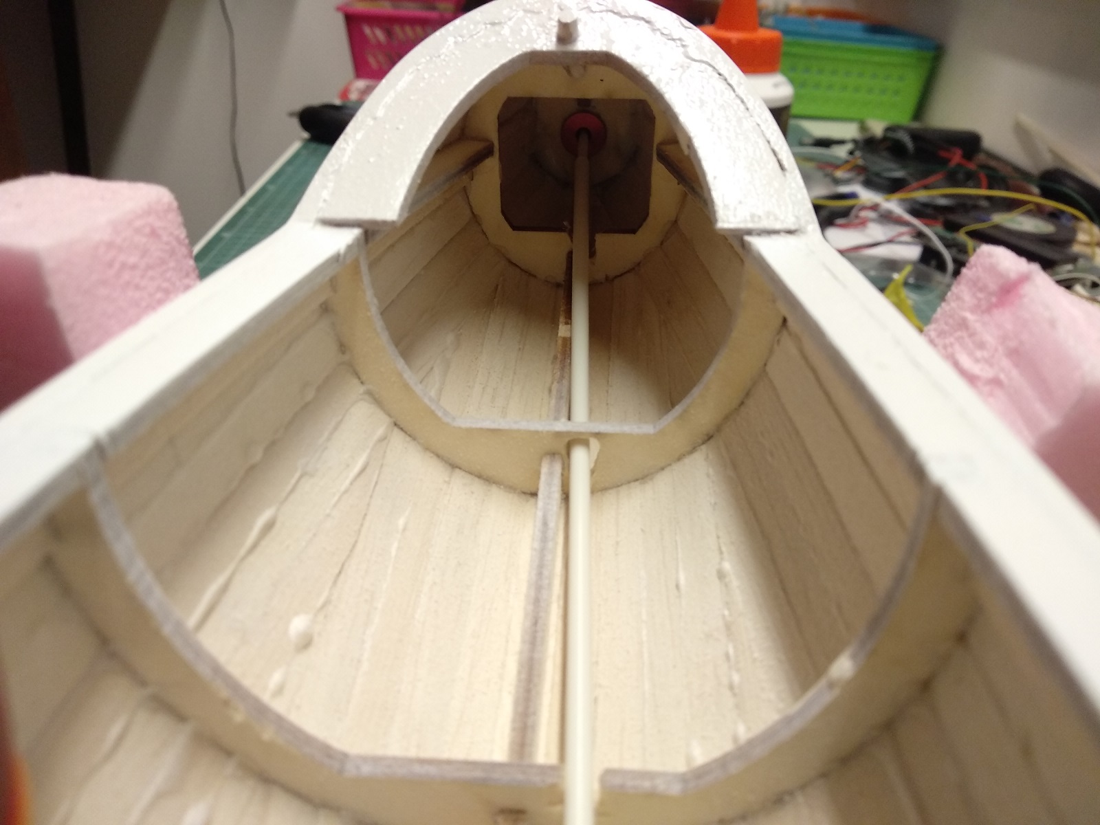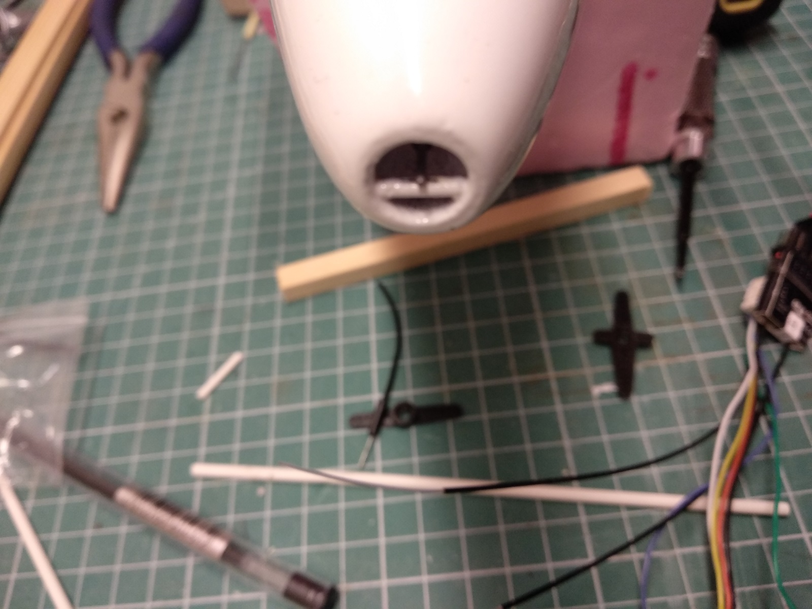 I jak już planowałem, gdzie robić otwór w kadłubie, naszło mnie, by spróbować jednak jakoś ten bowden poprowadzić do planowanego wyczepu.