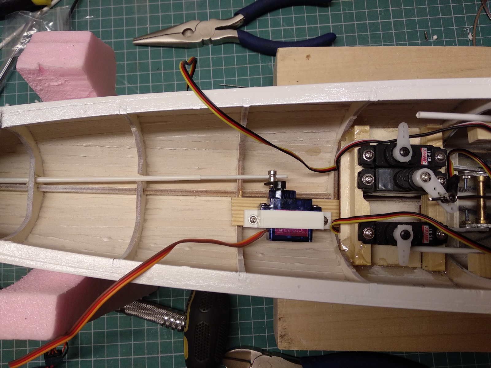 Wyczep nie dawał mi spokoju, zacząłem sprawdzać, mierzyć, jak by tu umiejscowić serwo.... i gdy wydawało się, że wszystko kicha,