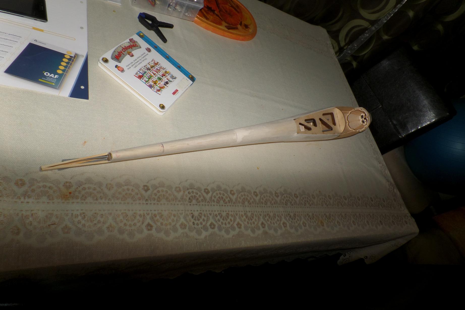 Kadłub wykończony, brakuje centropłata, który pojawi się gdy uda mi się wyciąć poprawioną wersje skrzydła.