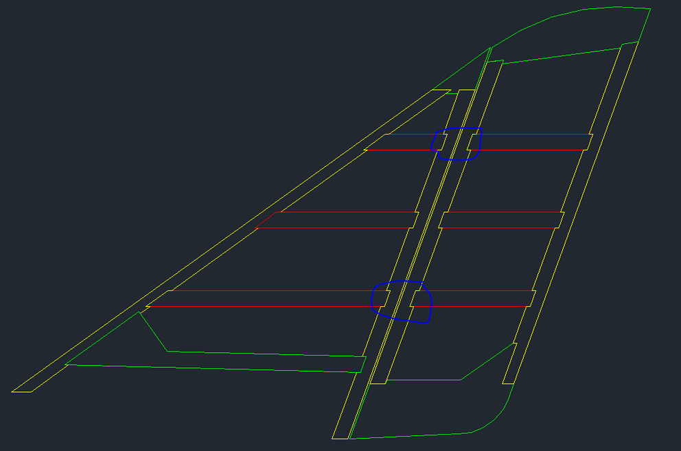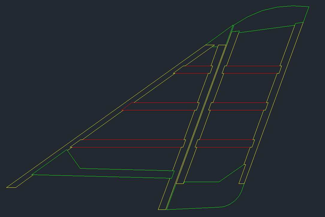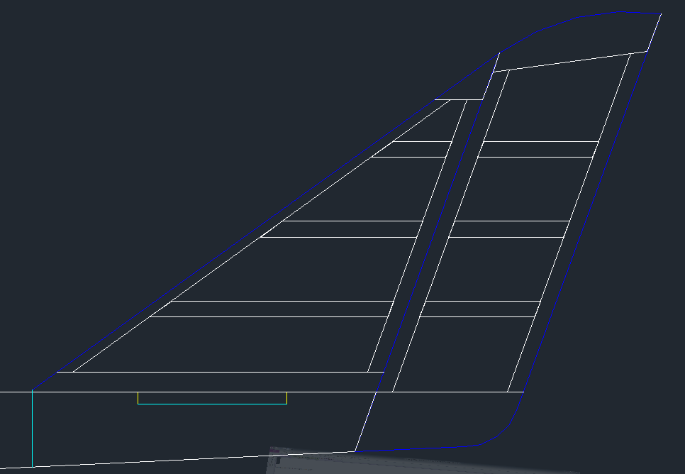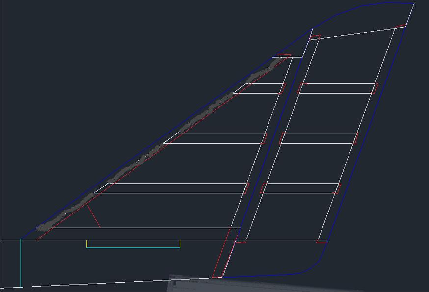 Skończyłem konstrukcję statecznika pionowego i steru kierunku. Wprowadziłem poprawki sugerowane przez Milo i wygląda to tak: